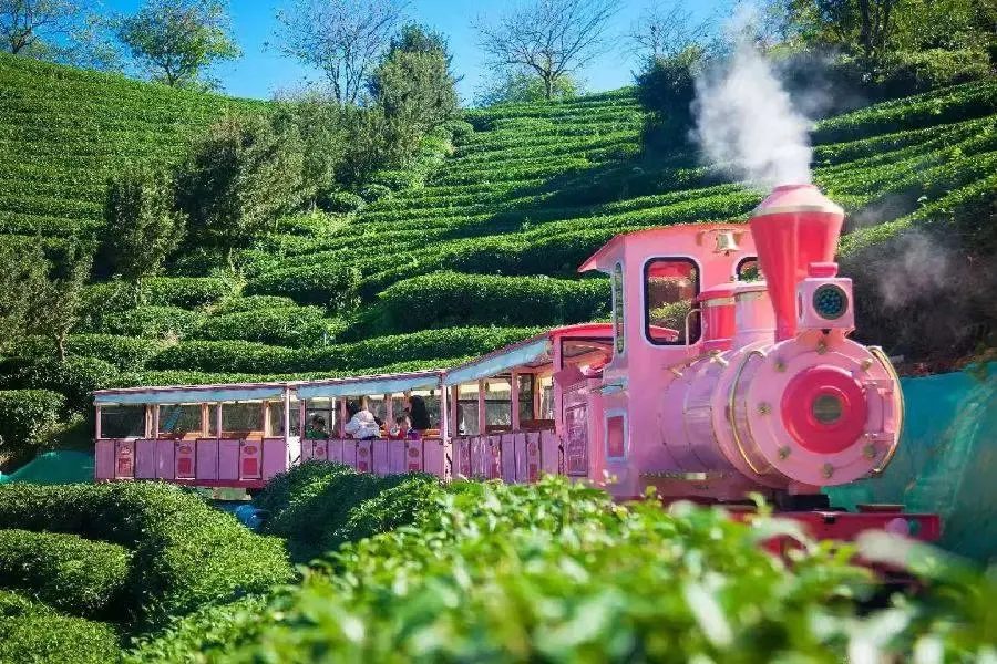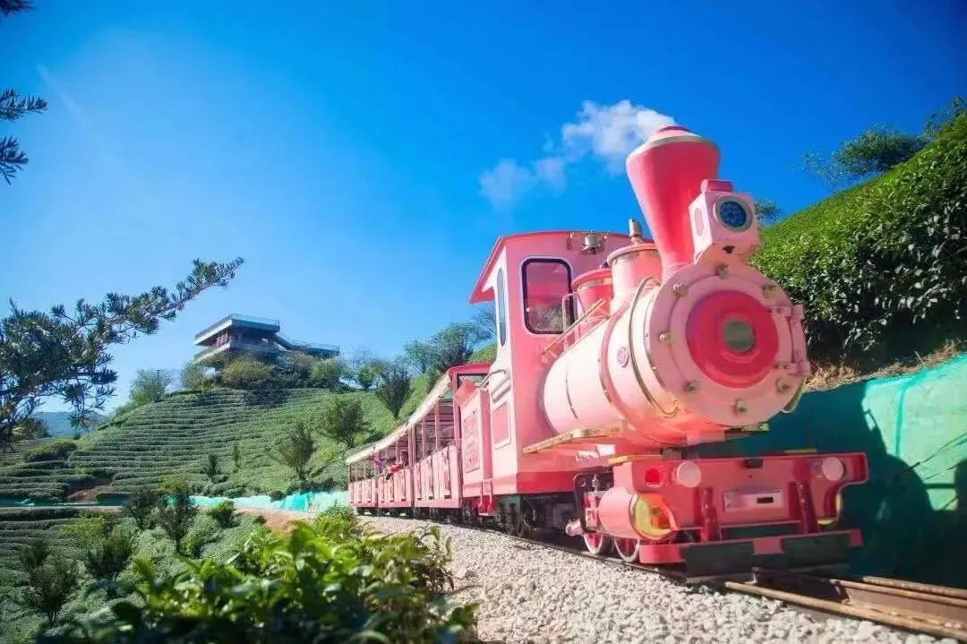清脆的火车铃声响起,由远及近,全程轨道总长约1000米,乘坐上TA,可穿梭在成片的茶园中,四周无遮挡物,一览无余,重点是超级出片!!!