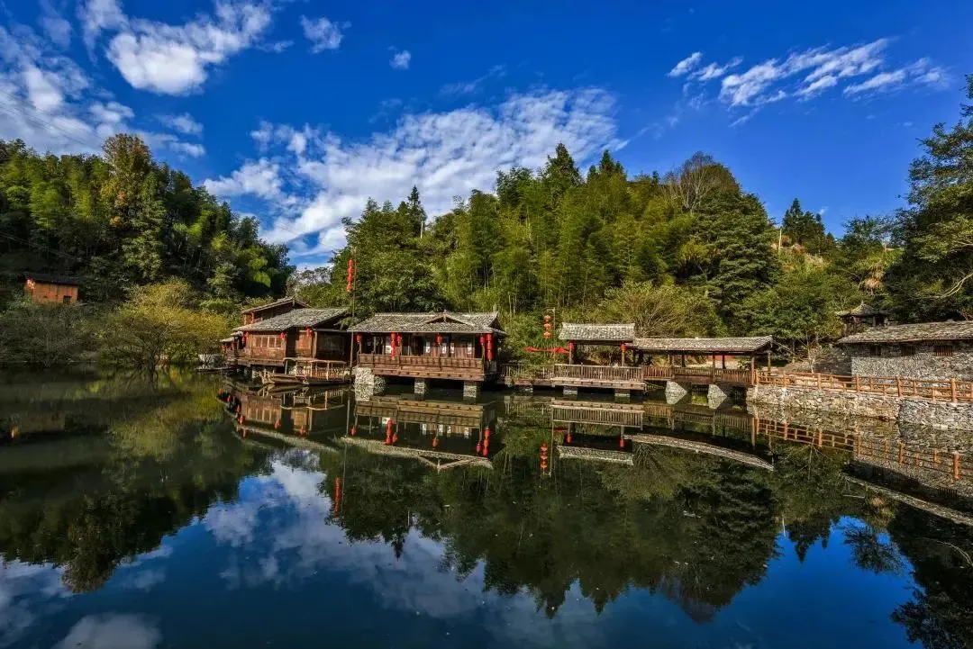13:00参观有着“长年无蚊”之称的客家山寨【丁屋岭】,山高林密,空气新鲜,曲径通幽,风景如画,至今仍保留原始村落形态。黄泥墙、黑灰瓦、木房子、石台阶随处可见,粗糙厚重的石寨门,天然独特的老石板,敞开式的老祠堂,乾隆年间的老古井,是这个村庄历史与文化的积淀。其中,丁屋岭大井被列入第三次全国文物普查不可移动文物名录。原生态的建筑风貌、秀丽的风光和淳朴的民俗风情让人流连忘返。
