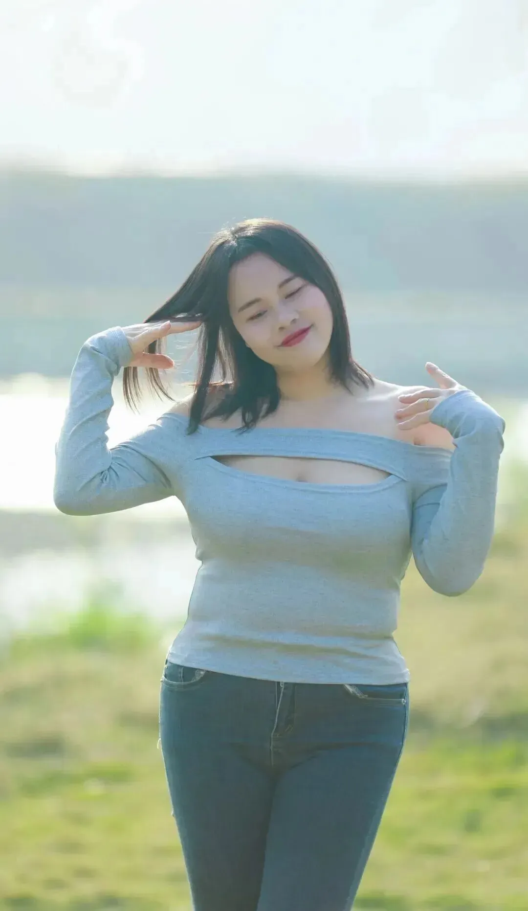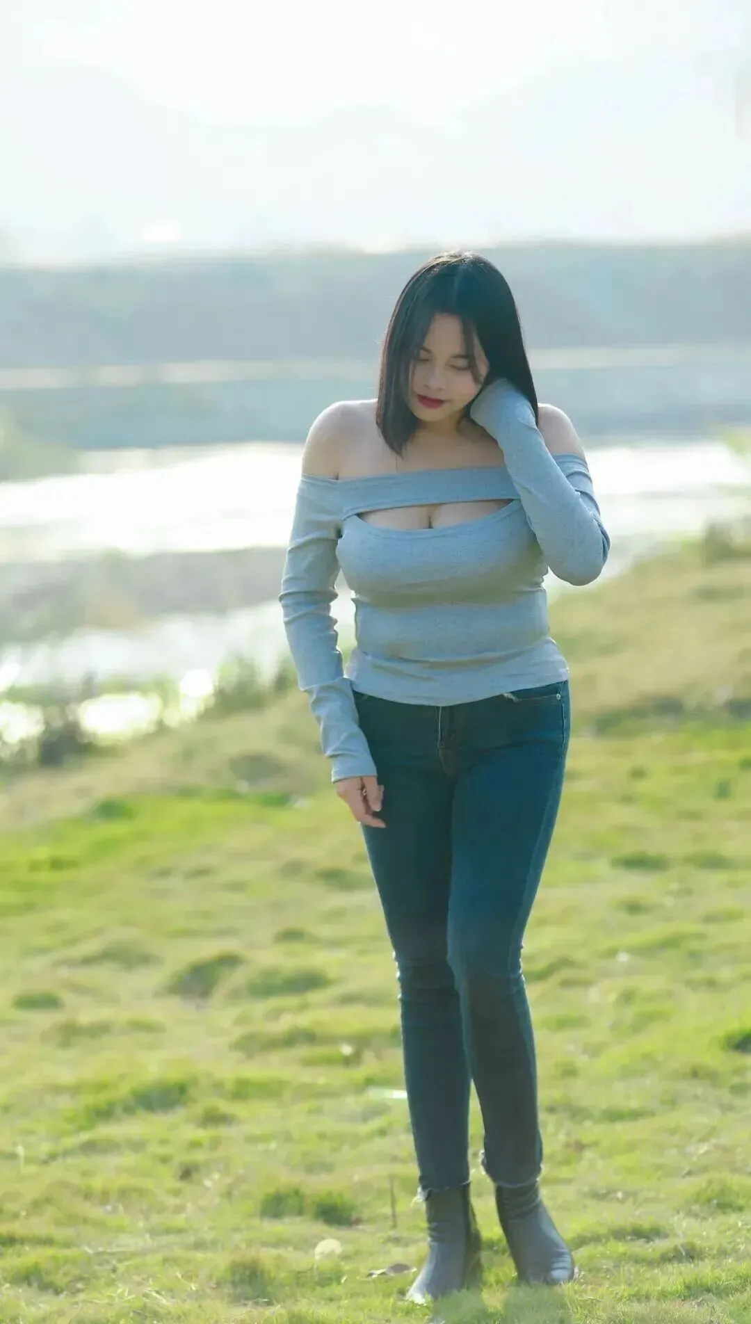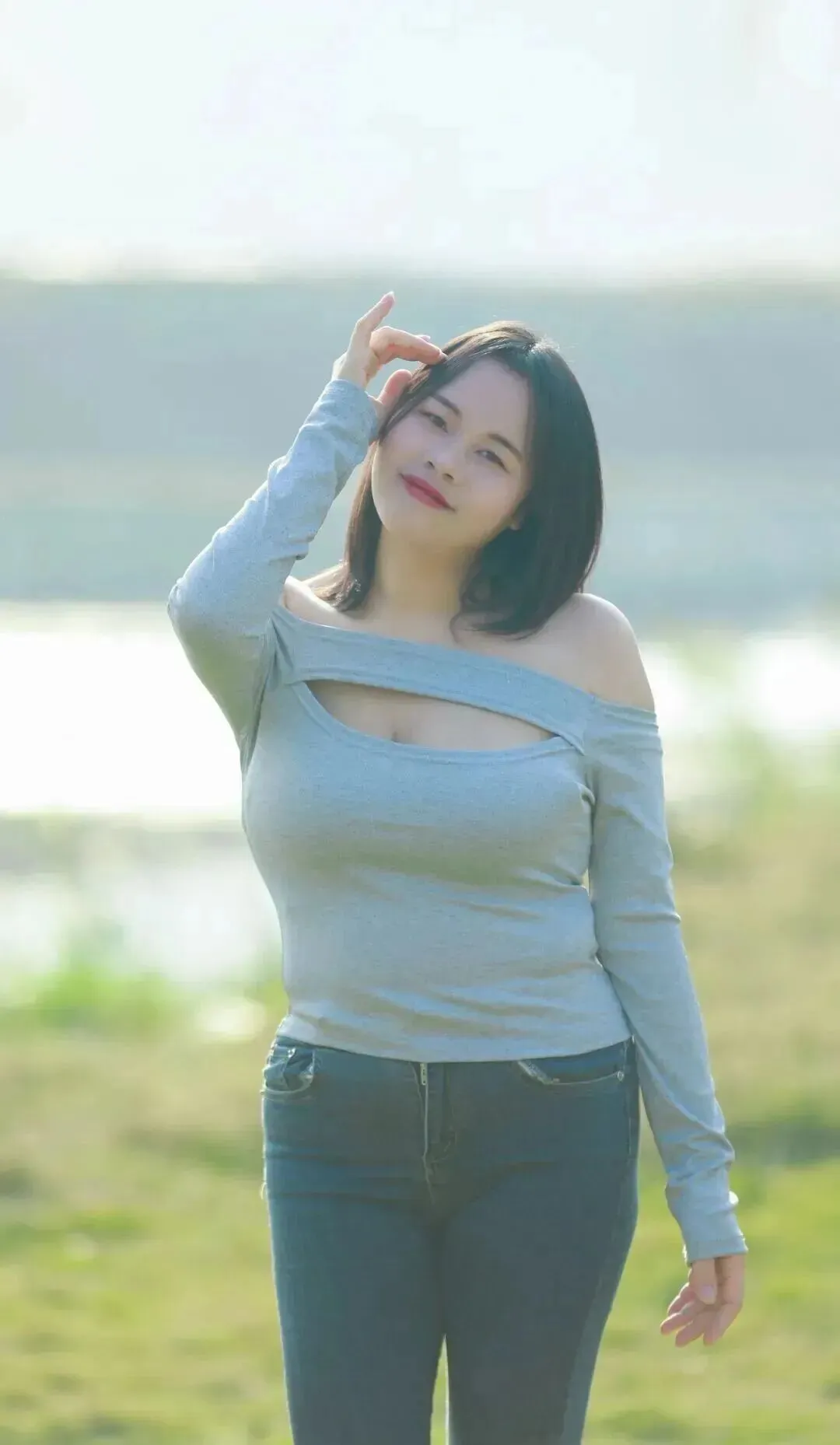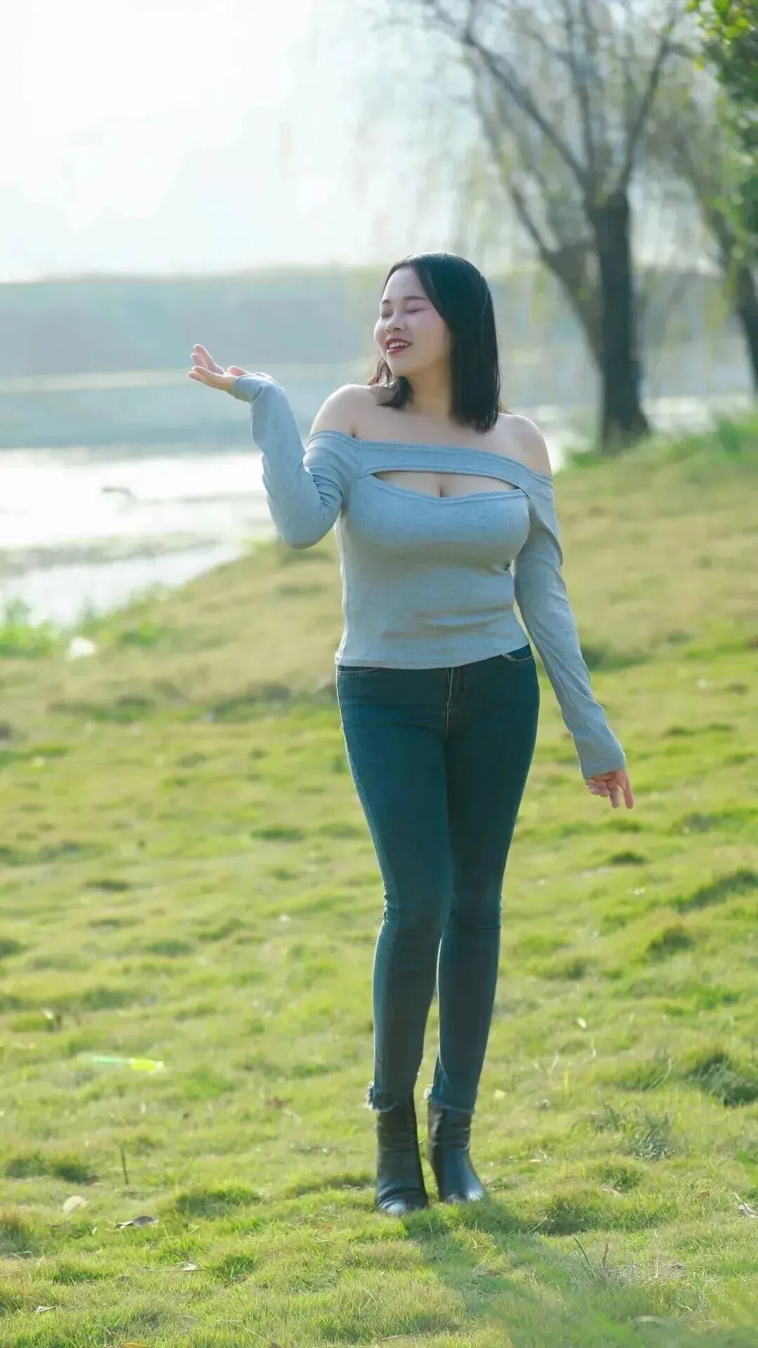 昨天下午带老婆去家附近的公园溜达,夕阳斜照在草地上,光线软乎乎的特别好看。我瞅着老婆穿的灰色露肩上衣配牛仔裤,和草地的绿色撞得特别有层次感,立马掏出随身带的微相机喊她:“快,给你拍几张!”好多朋友看了照片都问我是不是加了高级滤镜,其实真没有!我老婆本身身材就很有线条感,拍照时我只调了相机的曝光补偿,让逆光的画面不发黑,肤色保留了原本的质感,甚至连她脸上的小绒毛都清晰可见。