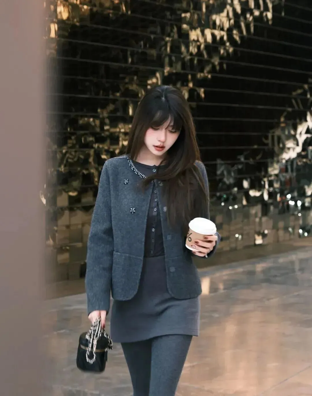 街角咖啡店的玻璃窗映出她的侧影,米色针织衫松松搭在肩头,黑色半裙裹着依然窸窣生风的腰身。端起咖啡杯时,指甲修剪得圆润干净,腕间檀木手串随着动作轻轻晃动,带起一阵若有若无的茉莉香。