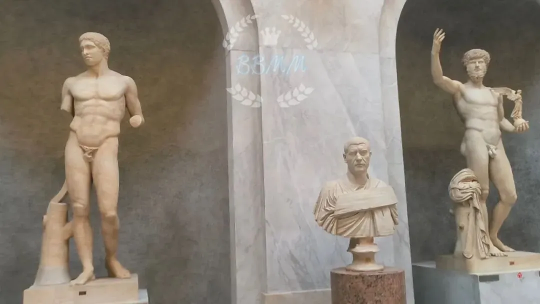 出了埃及馆就是铺天盖地的雕塑扑面而来,这里就是让人沉醉的雕塑长廊,它是梵蒂冈博物馆古典雕塑中价值最高的一部分,包括拉奥孔和他的儿子们、观景八角庭院里的阿波罗神像、缪斯厅里“残躯”等著名的古典雕塑作品。站在这里,古希腊古罗马那些姣好的面容和美好的肉体带来的强烈视觉冲击,让人陶醉让人惊叹。天呐,什么是希腊雕塑脸的典雅与质感,什么是罗马人体美的和谐与活力,在这里你都能找到最准确的答案。看那些棱角分明的面孔、神秘温润的微笑、挺拔有力的体型、动感矫健的身姿里,都藏着不羁的自信和浪漫的洒脱,每一座雕像都是成熟与野性、人性和神性的巧妙融合。看得我司汤达综合症又复发了,没功夫拍照,随便拍了点视频,下面都是视频截图,可能有点糊,难以领略到男神女神们的风采和精髓。😜😜