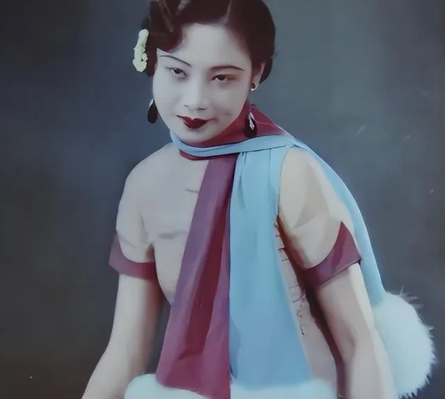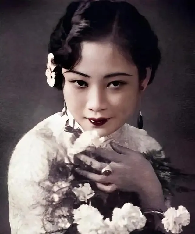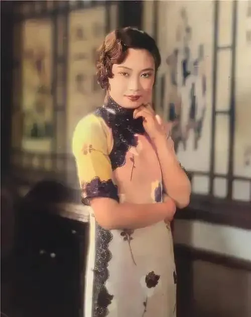 图中这位是胡蝶,柳叶弯眉贴着细细的发际,旗袍是绸缎做的,肩头拼色,缝口收得利落,最绝的是她的眼神,带点笑不笑的挑衅味儿,像说你别急,我自有主张,老照片一上色,珠光就从耳垂上晕开了,灯一暗,她的脸比灯还亮。
