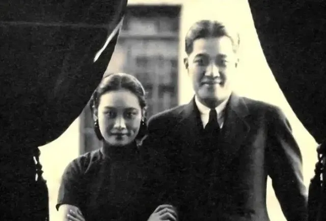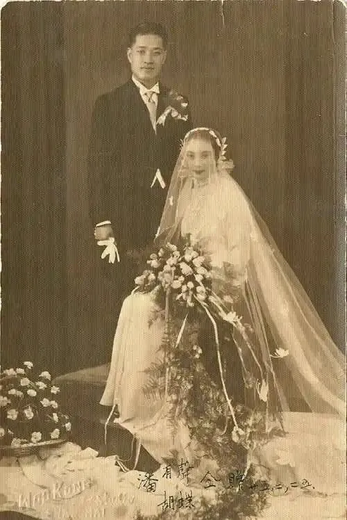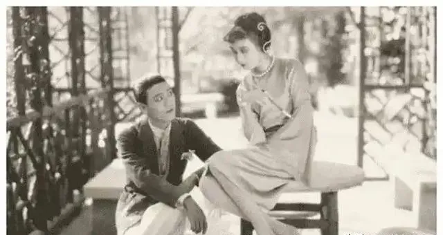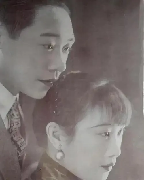 这个并肩站着的是胡蝶和潘有声,黑呢子西装配暗格领带,幕布垂下来把人框成一幅画,笑也不笑,只把肩靠上去就够甜了,那个年代流行含蓄,手没牵,心早牵上了。