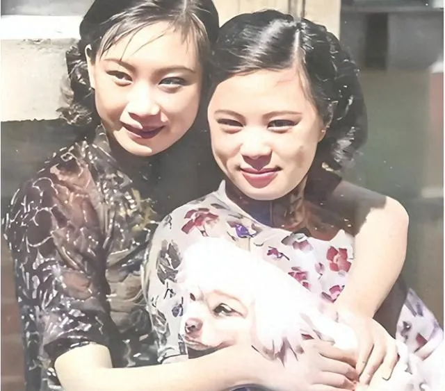 这个姐妹相拥叫胡蝶和堂妹胡珊,花影旗袍贴身,胳膊一环,小狗埋在怀里露出一撮鼻尖,家里人爱逗她俩笑,说你们俩笑起来像两枚梨涡对称放,果然镜头一闪就陷进去了。