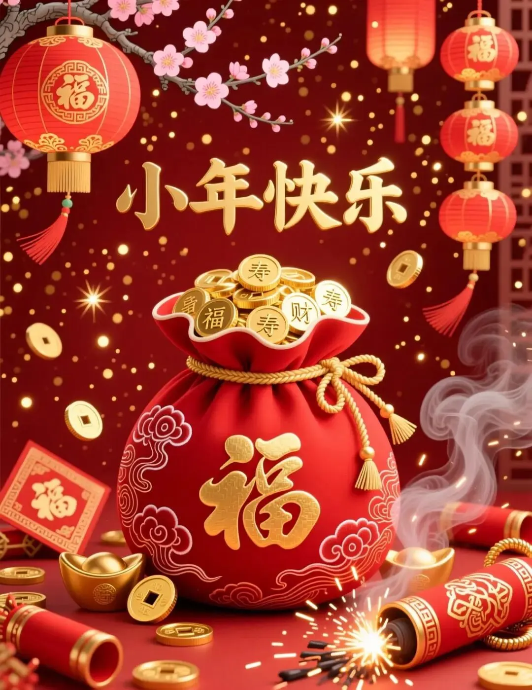 🎊🎉🍬 小年祝福送出🎊,新年快乐永伴🎉,愿你一切如意🌟,幸福安康常在!生活像糖果一样甜蜜🍬,事业如灶火一样兴旺🔥,小年快乐!🥰💖🍎