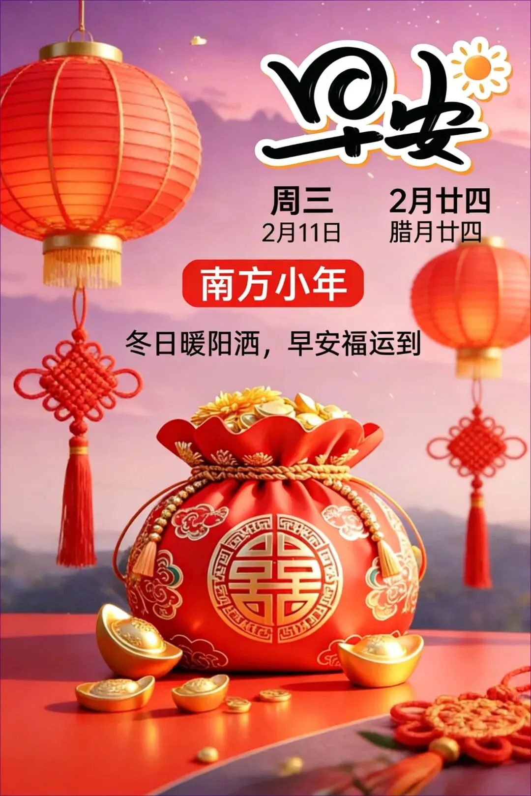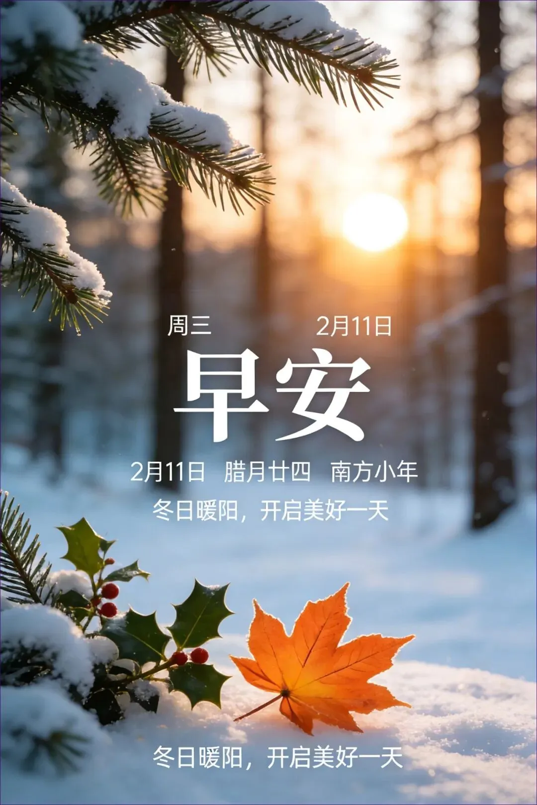 当前位置:首页>美女资讯>2月11日 早安图片 腊月廿四南方小年漂亮早安问候图片大全最新