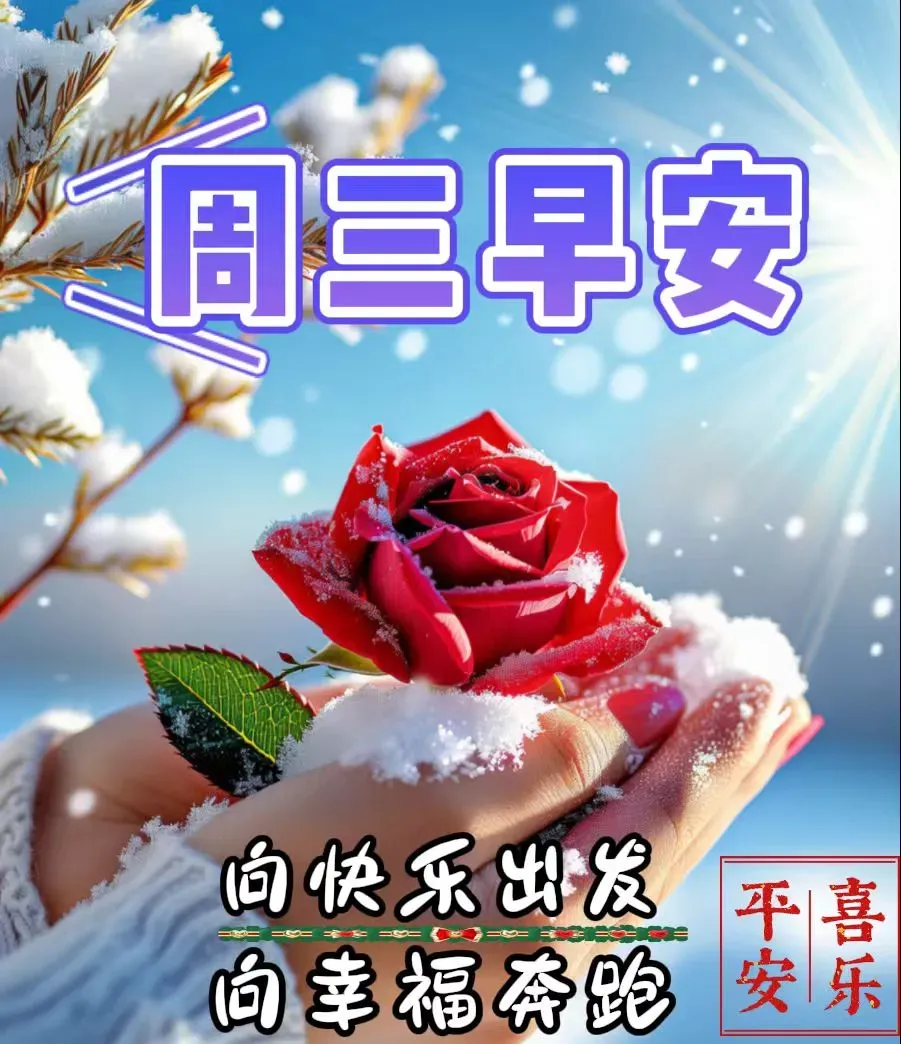 5、🌨️💖🙏 一场冬雪一场寒,一句祝福暖心田。暖暖阳光,默默照耀;平淡日子,慢慢前行,得失皆随心。愿大家在这个冬天,生活满是温馨,事业顺遂吉祥,心情开朗如冬阳!早上好!🥳🍀🌞