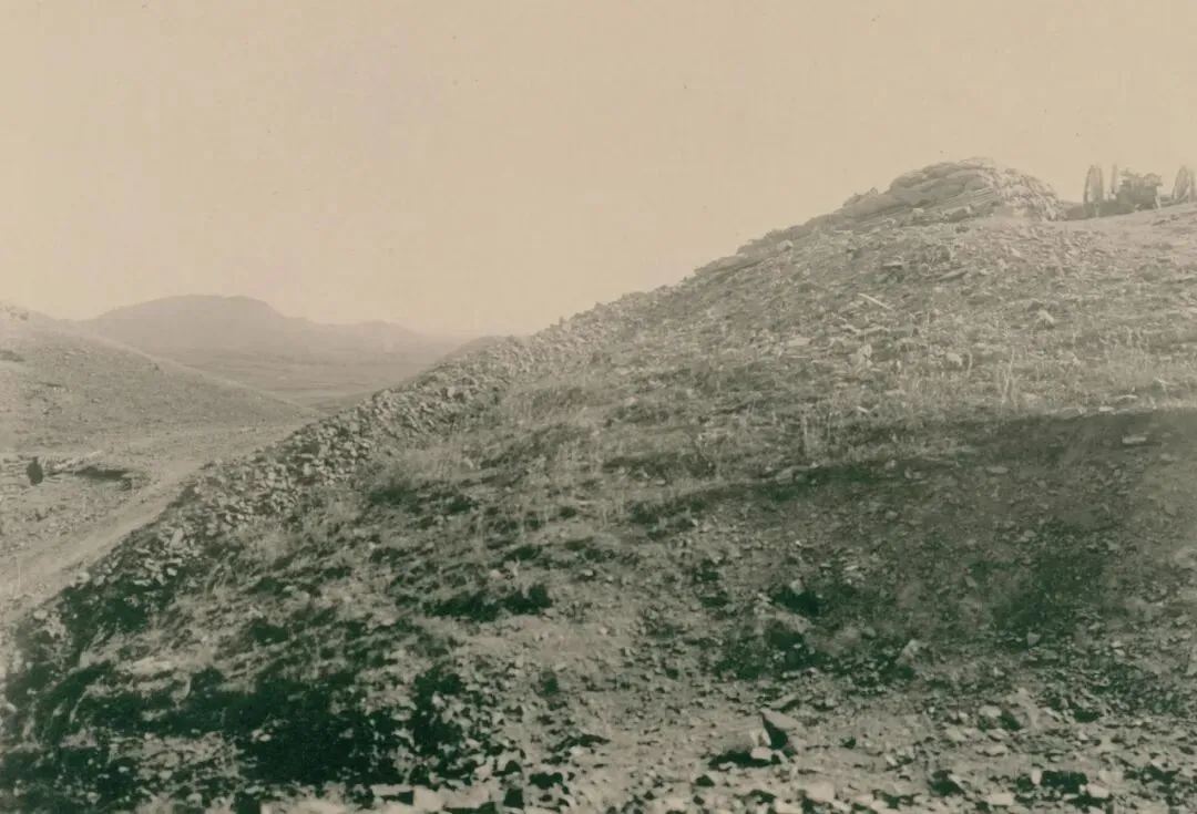 凤凰山东南128米高地的东坡上,一些由俄军炮弹造成的弹痕。由于第一炮台右翼的两门火炮从俄军堡垒可以直接看到,所以,这附近地区遭到的炮击最为频繁,据说在8月期间,俄军发射过来的炮弹数量超过了1300发。