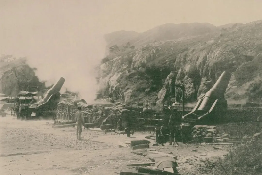 在鞠家屯(龙头街道王家村)北方约500米处,日军28厘米口径榴弹炮炮击旅顺港内的俄军军舰。
