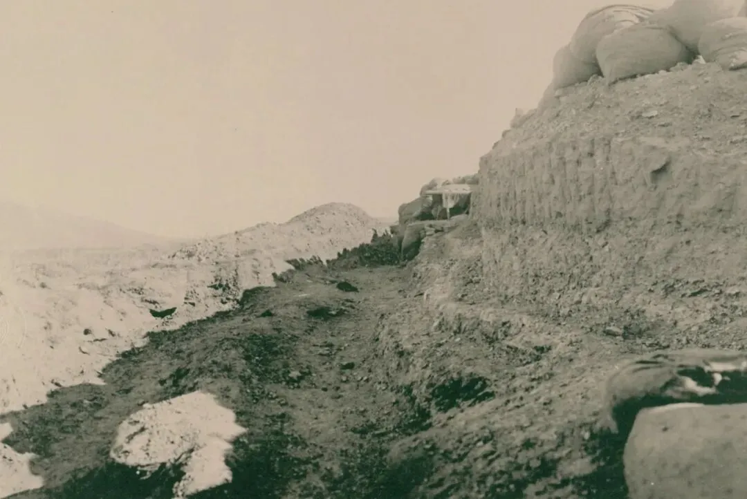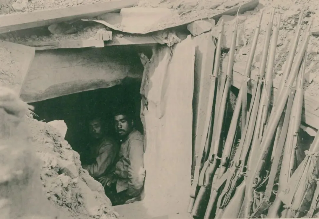 面向东鸡冠山北堡垒的攻城战壕中,第三步兵阵地内。1904年10月7日下午03:20分,此时,第五步兵阵地部分已经建成。其中一部分已推进至俄军辅助防御工事内,该阵地距离俄军主堡垒大约300米。