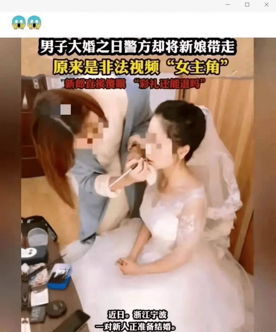 宁波娇嫩新娘婚房现场被带走,被曝光竟是不雅片女主角:找错对象,是人生最坏的选择