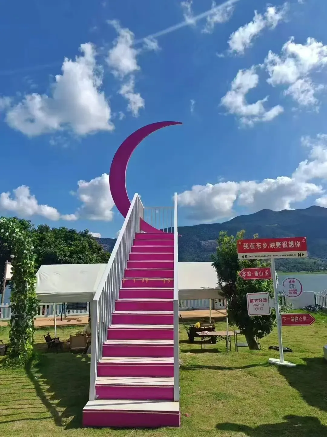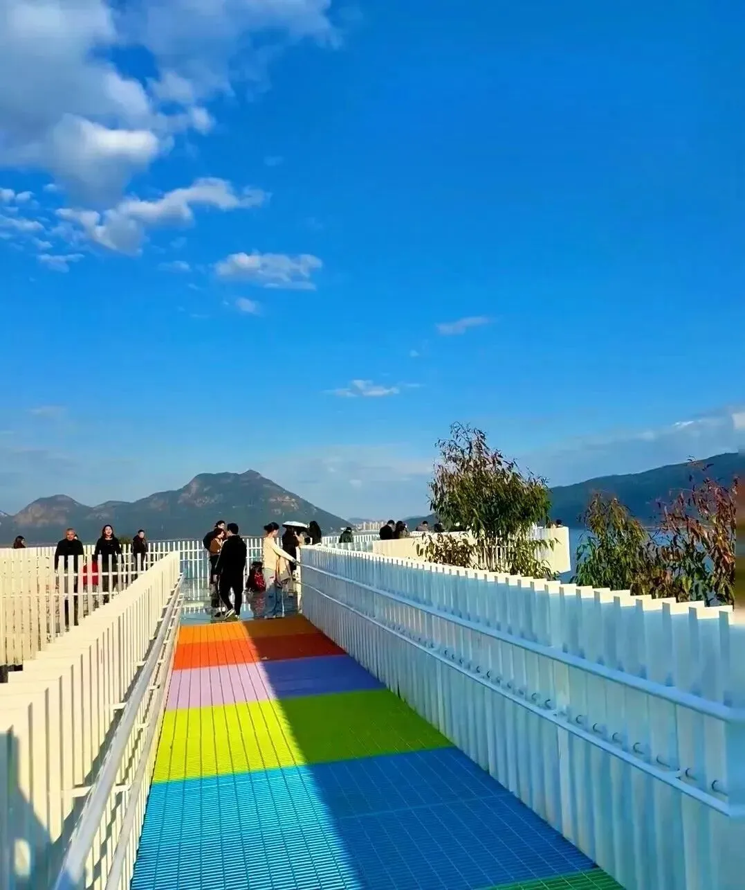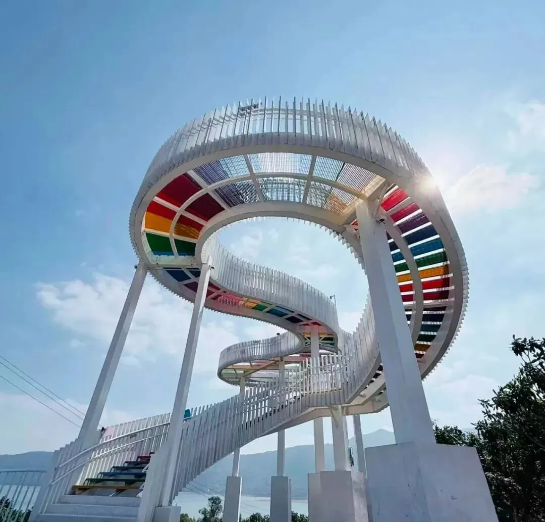 从停车场出发,你将踏上那条梦幻般的彩虹玻璃栈道——云中漫道。这是一条通往仙境的秘径,透明的栈道悬于空中,脚下是波光粼粼的小洱海,远处是连绵起伏的青山,仿佛一幅流动的水墨画卷。