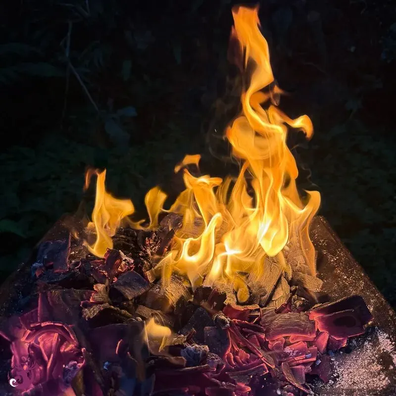 苏尔女神真是慈爱又贴心。原本仪式结束时下起了雨,我实在担心雨势太大而无法顺利在山上进行火祭。没想到抵达山上时,雨竟然停了,而且微凉的天气非常适合进行火仪式。火祭的速度也超乎想像的快,女神温柔地接受了我们的奉献,实在太感动也太美好了。