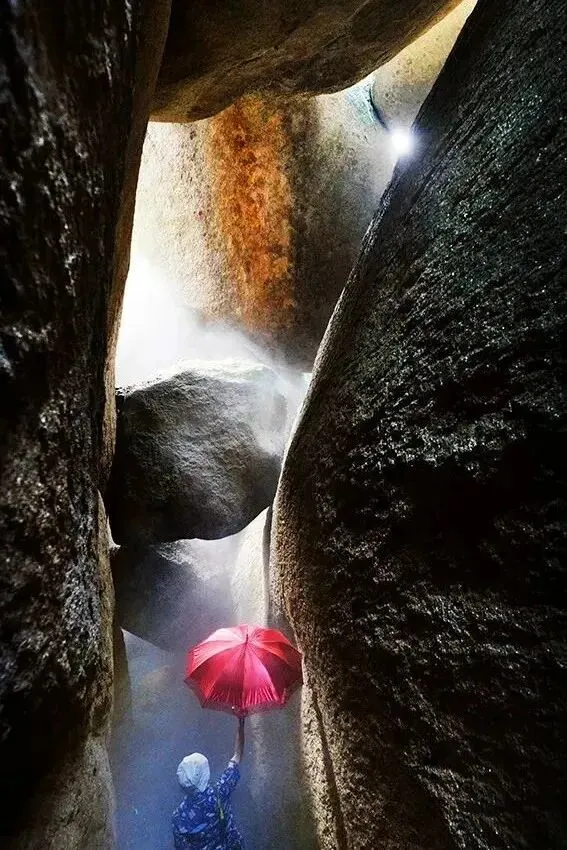 浮想联翩,似与非似,无不赋予“随人意所识.万象在胸中”的想象空间;峰石之下,一百多处岩洞,如“井”字形分布,大洞套小洞,小洞连大洞,洞洞相通,宛如地下迷宫,纵横交错,曲折幽深,行径之间,时蹲时俯、时侧时爬,妙趣横生,为天下名山所少有的花岗岩洞群景观,令人折服叹止。登临峰顶,眺望东海,星罗棋布的岛屿,风光旖旎的海湾,千点风帆,万顷碧波,尽收眼底。晨观红日,夜揽皎月,壮美、空廓,无与伦比;要是云雾缭绕,山峰便成了海中飘渺的岛屿,恰是蓬莱仙境。