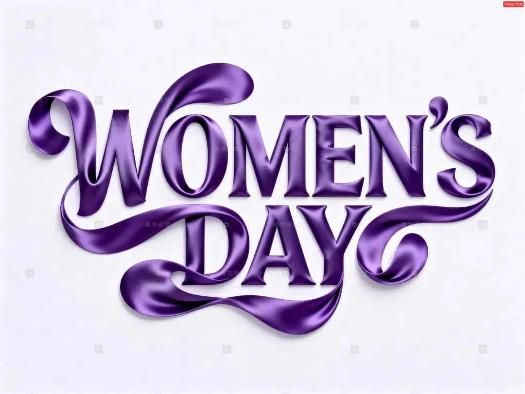 字体标志“WOMEN`S DAY”,文字由柔滑丝绸材质组成,高级紫,创意字体设计,线条流畅且富有艺术感,笔划饱满流畅,立体光影,将字体进行抽象变形,创造出独特的节奏和动感,给人以超级强烈的视觉冲击,叹为观止,大师获奖作品,高级干净背景,