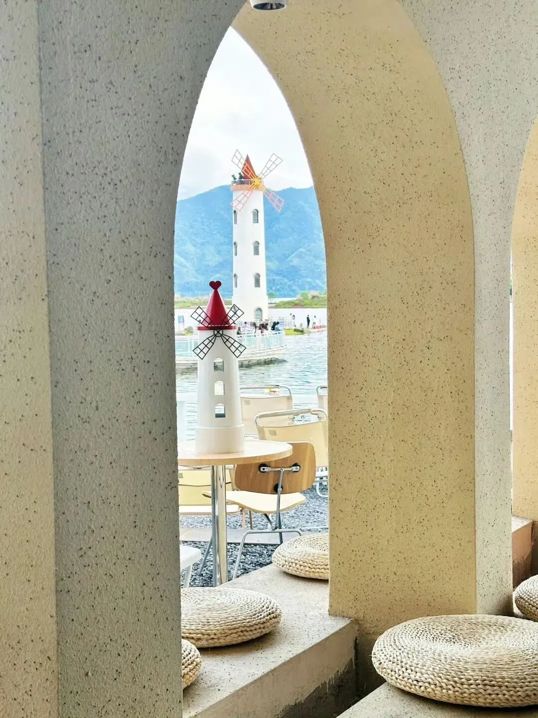 晴日里,纯白塔身倒映粼粼碎金,恍若浮空之境;