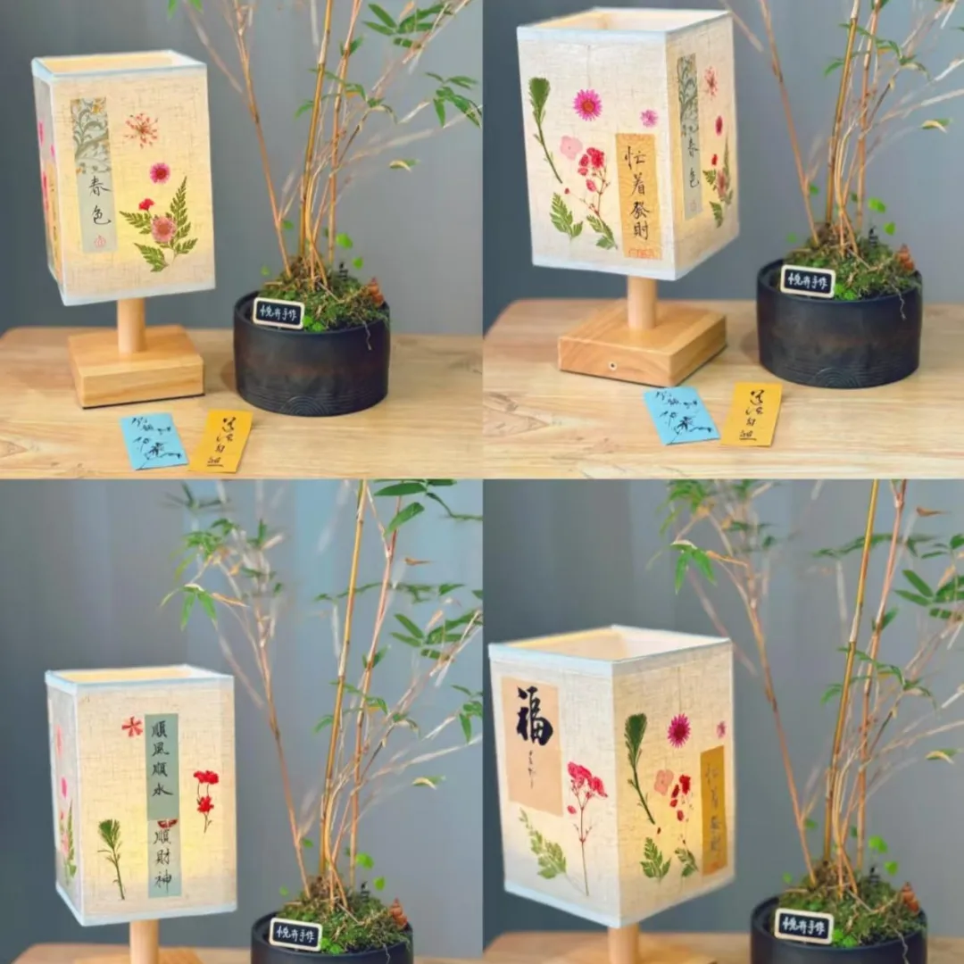 亲手将自然馈赠的花叶嵌入灯盏,