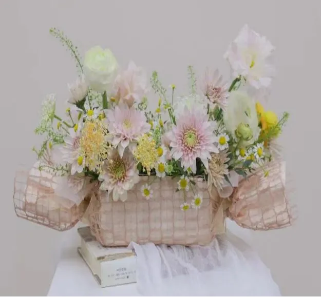 式选择:文艺复古花卉小包、清新PVC手提袋、糖果桌花