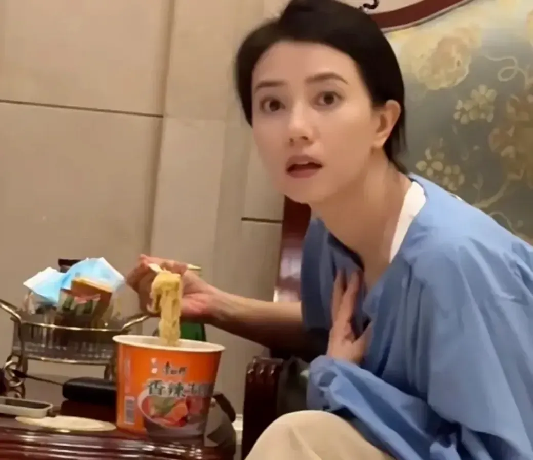 44岁高圆圆偷吃泡面被拍,嗦面舔嘴毫无女神包袱,抬头瞬间美到心坎上了