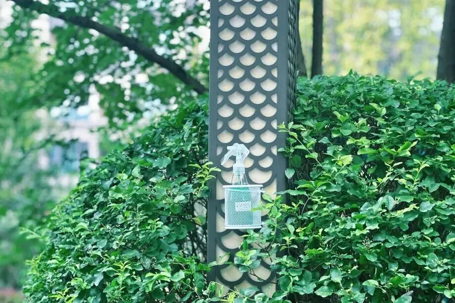 夏日的园区植被繁茂,绿意葱茏如画,却不见了蚊虫纷扰。六盏灭蚊灯在绿荫深处静静吐纳,光晕晕染开一片安宁。转角处的花露水站,覆盖园区20余个点位,并定期补充,犹如夏日里的一缕清风,随时为业主送去清凉防护。
