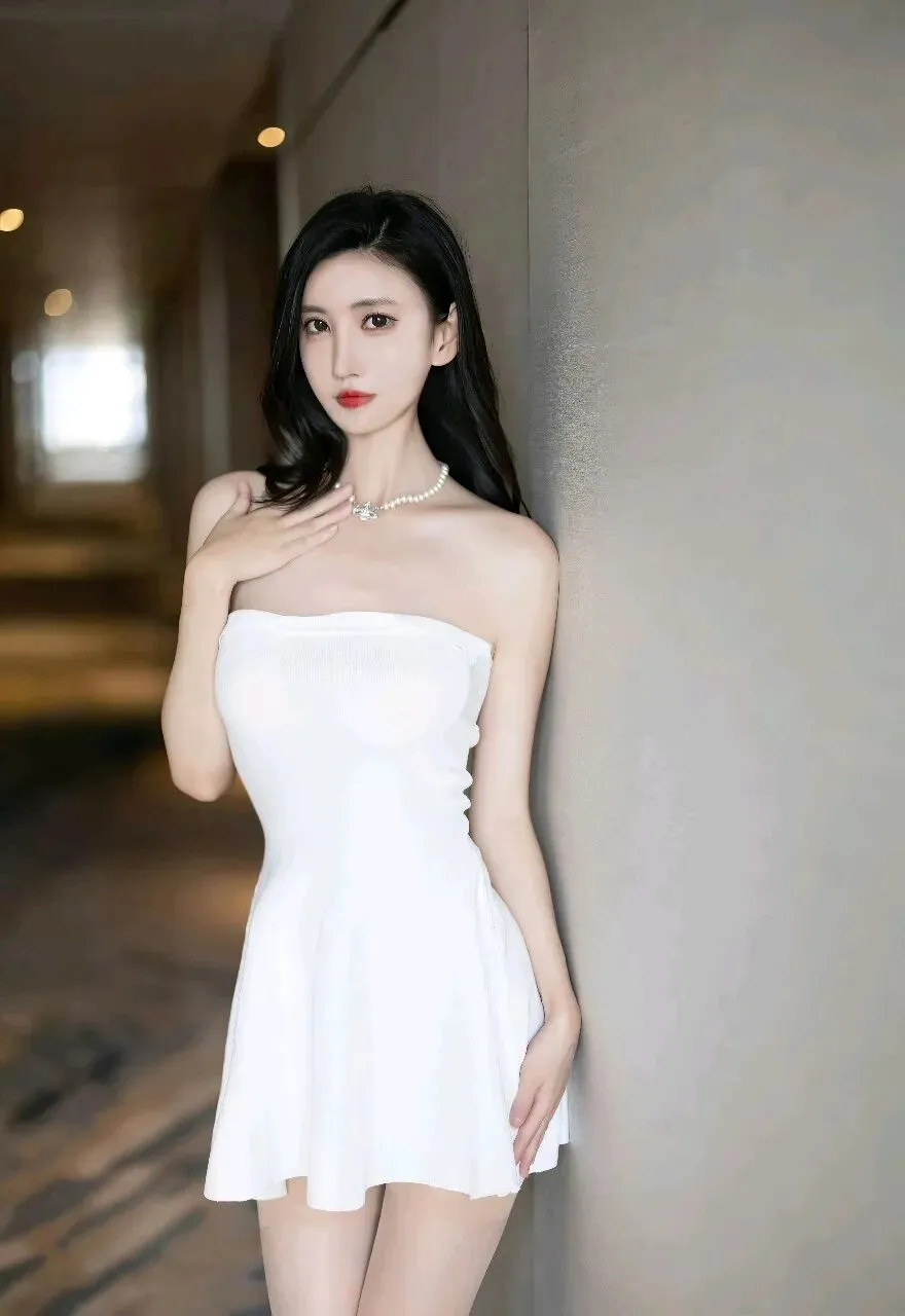 当章芃芃身着一袭纯白抹胸短裙出现在镜头前,整个空间仿佛都被按下了静音键。她就像从都市童话里走出来的女主角,在暖黄灯光与冷白光影的交织中,演绎着一场关于优雅与性感的视觉诗行。