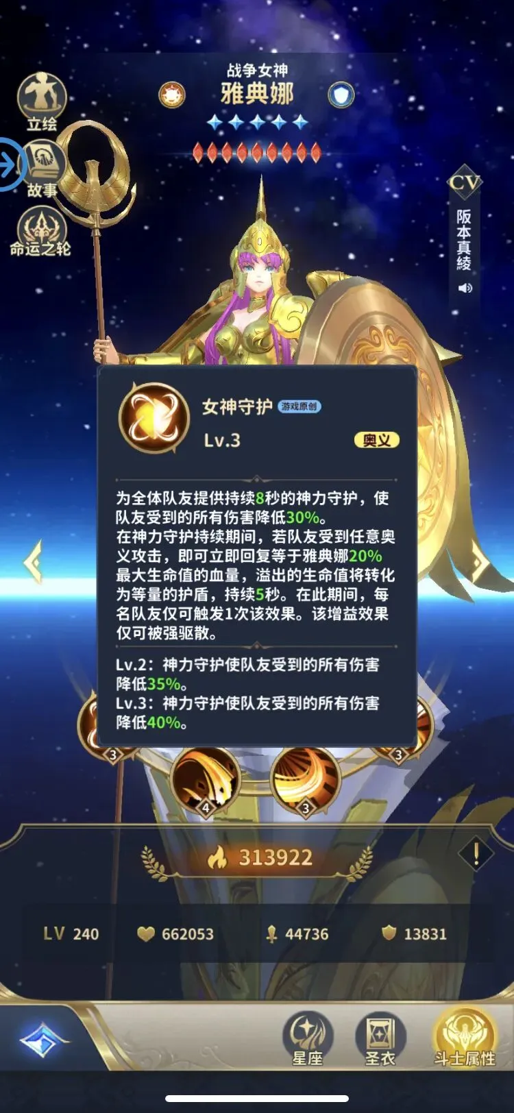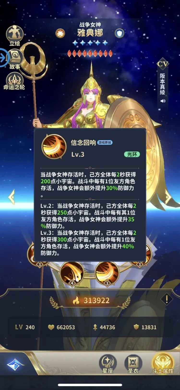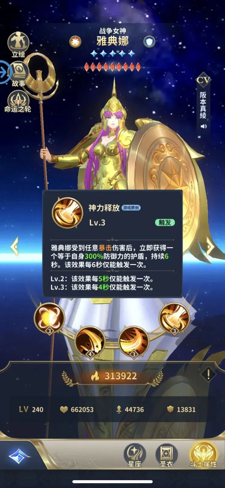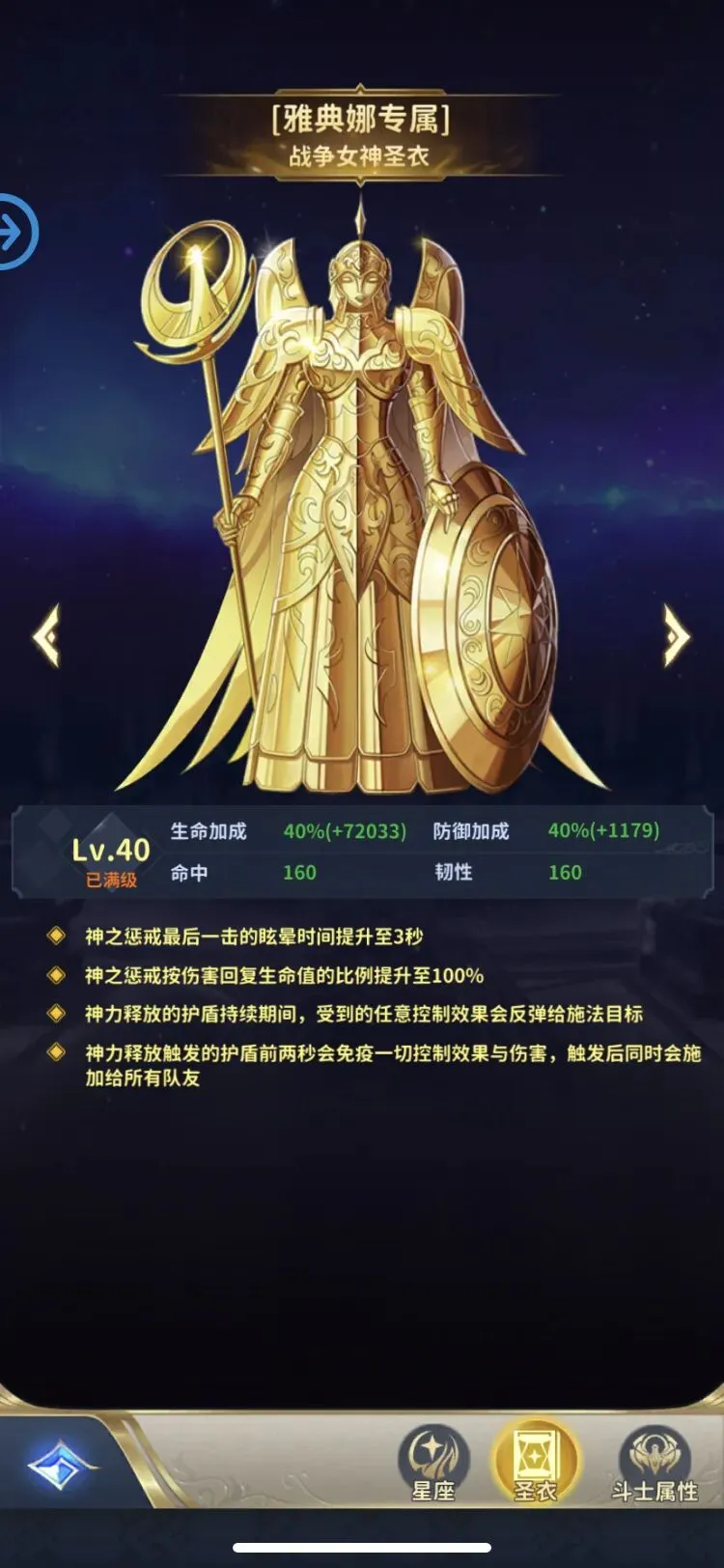 圣衣是雅典娜的核心养成目标,优先拉满至30级,解锁全部特效。