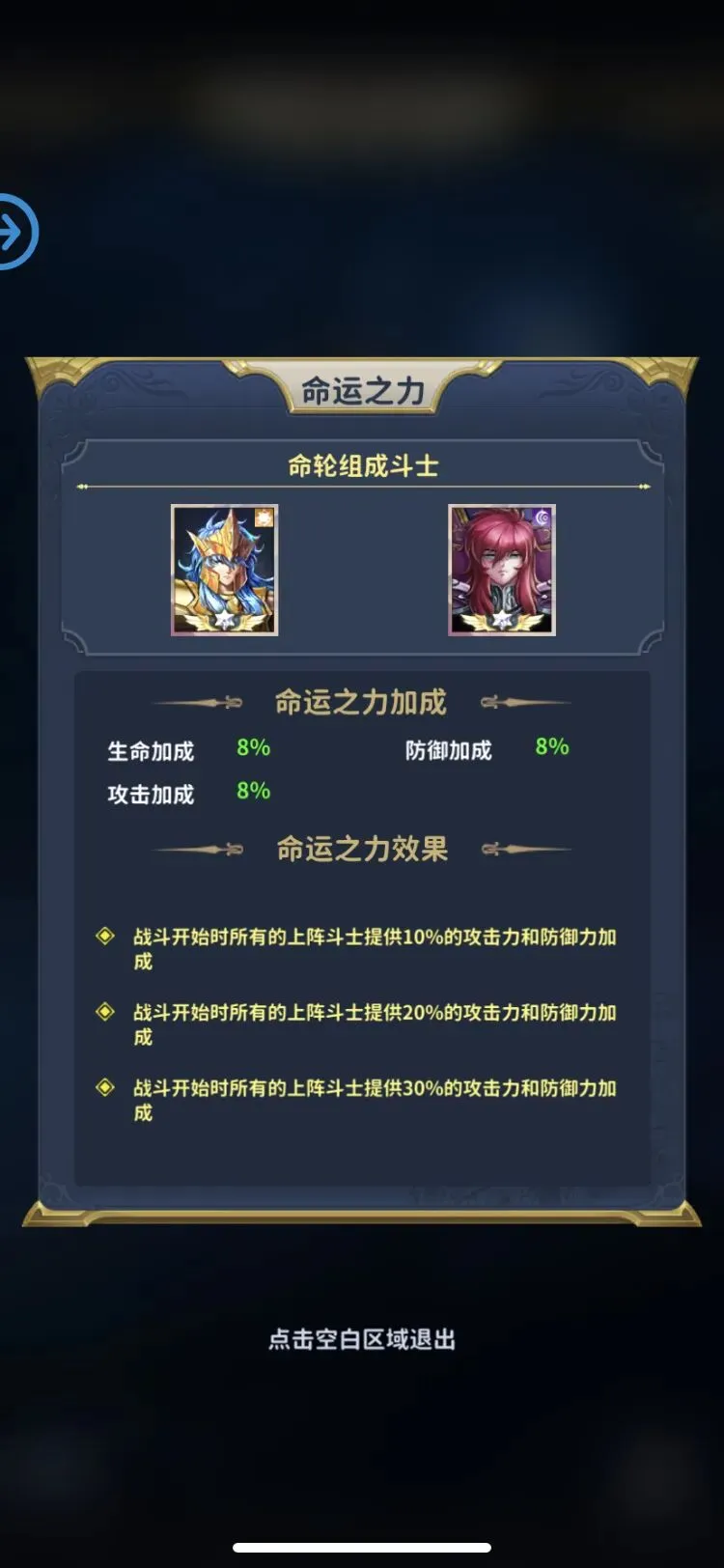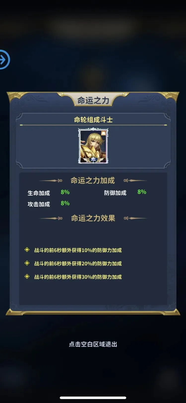 战娜和眼沙一起上阵时,战斗前6秒额外获得30%防御加成 开局抗压、防爆发阵容。