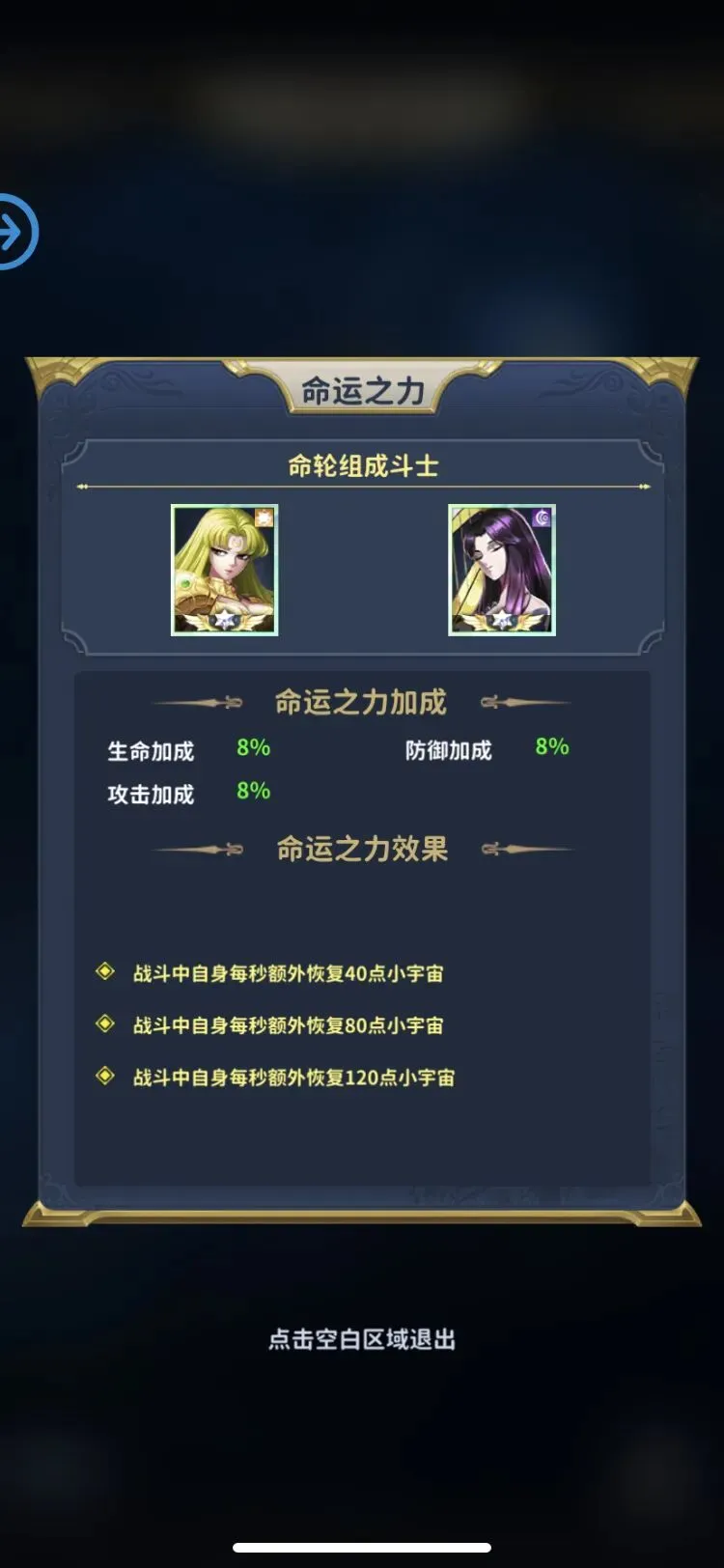 战娜和潘多拉、月神一同上阵时, 自身每秒额外恢复120点小宇宙。奥义流阵容,保障女神守护频繁释放。