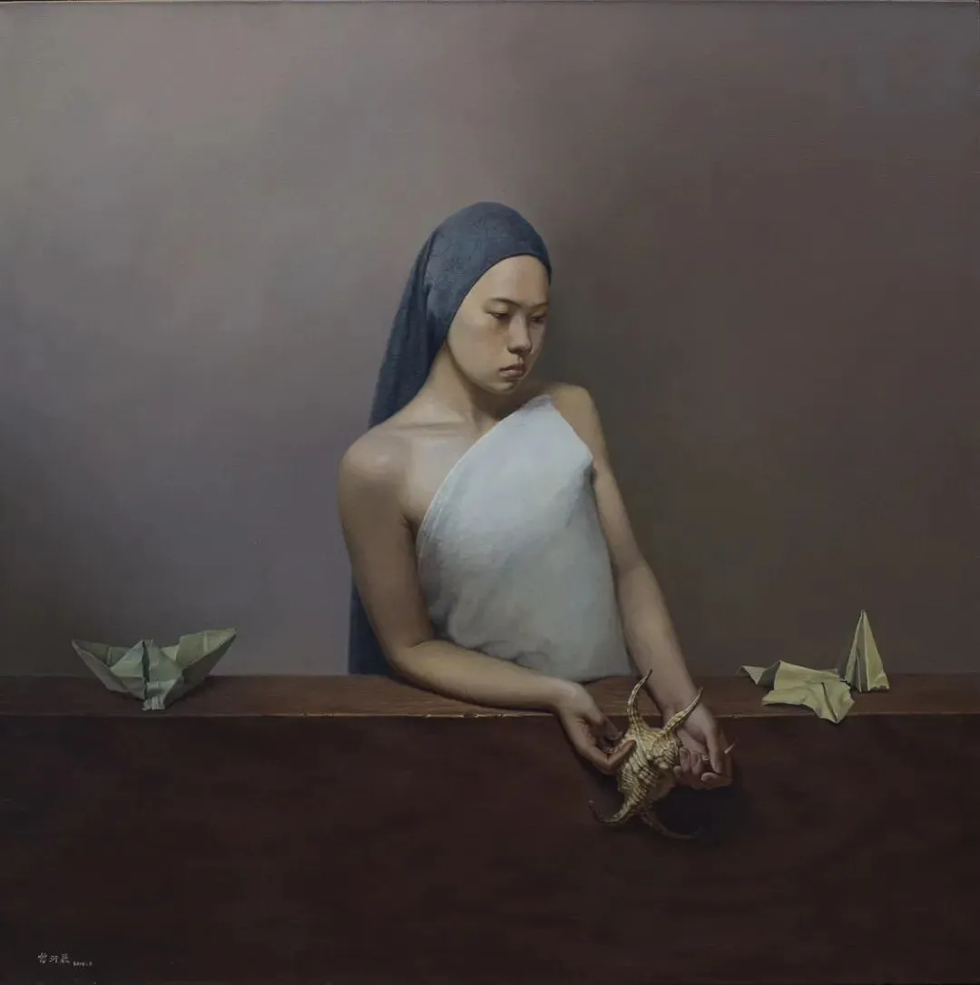 在中国艺术话语中,这种联结始终指向写实追求。它不同于西方纯主观的抽象表达,而是以写真为根基,在创作中保留现实温度。无论是致敬古典的海螺纸船意象,还是雪山女子的孤独感,皆未脱离“形真”的底色,却又融入东方哲思,让写实不止于“像”,更成为承载情感与文化的载体。这种创作逻辑,既延续了中国艺术“外师造化,中得心源”的传统,也让当代油画人物在写真与创作的平衡中,有了独特的中国韵味。