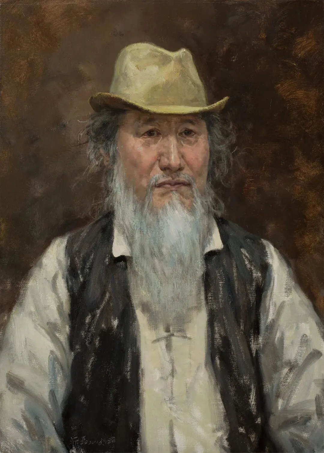 《仡佬族老汉》50×60cm布面油画2019曾沂聂
