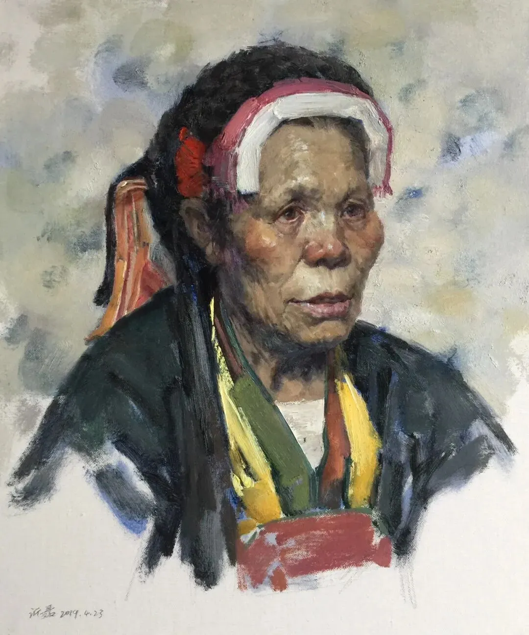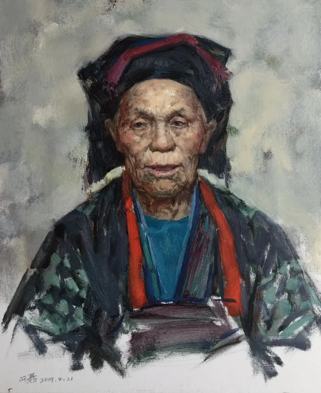 《苗族老妇》50×60cm布面油画2019曾沂聂