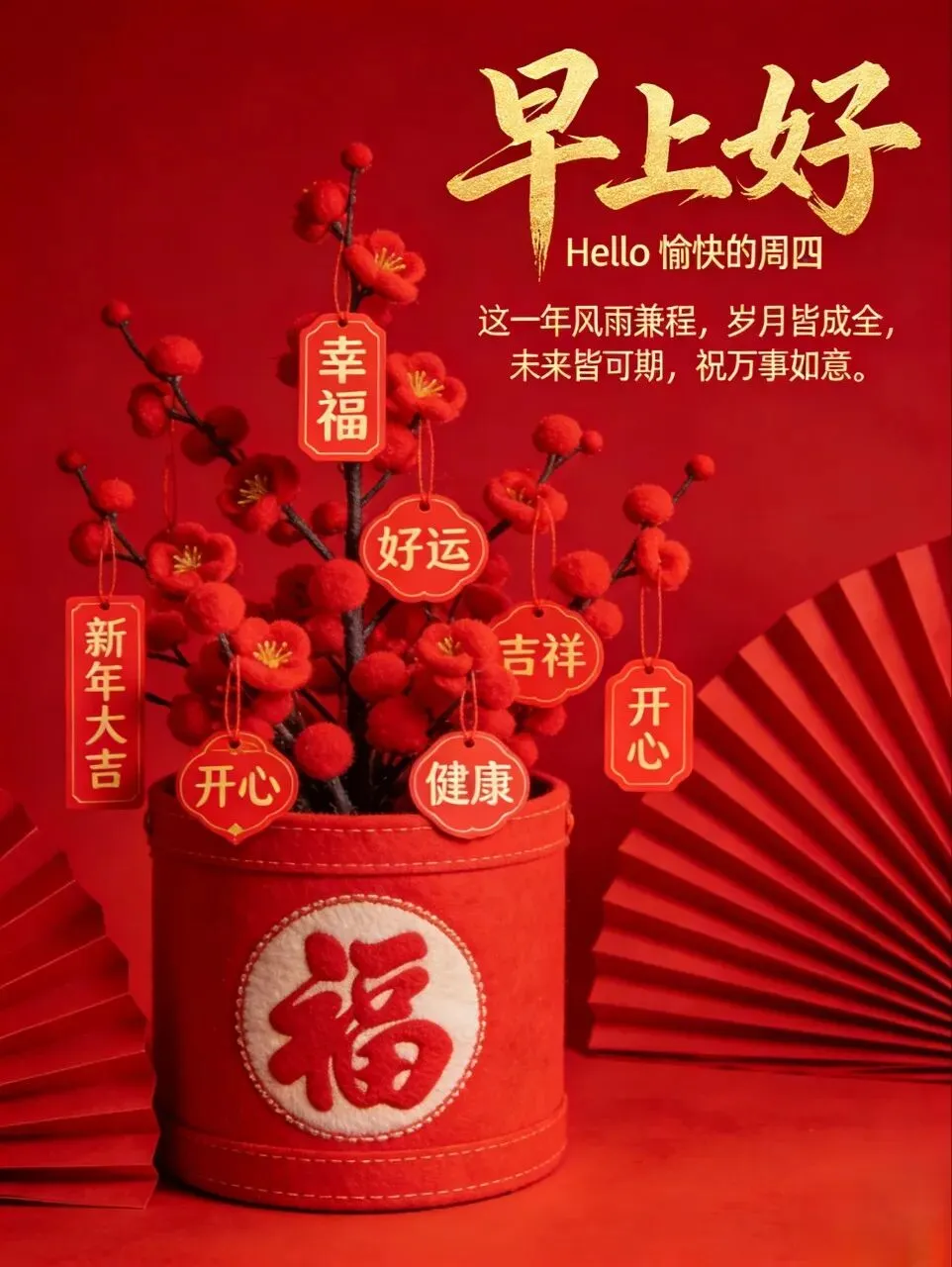 2026年2月12日,星期四,精美创意图片集,早安暖语.新的一年,平安是福,健康是喜,愿每一思念,都能被温柔回应.