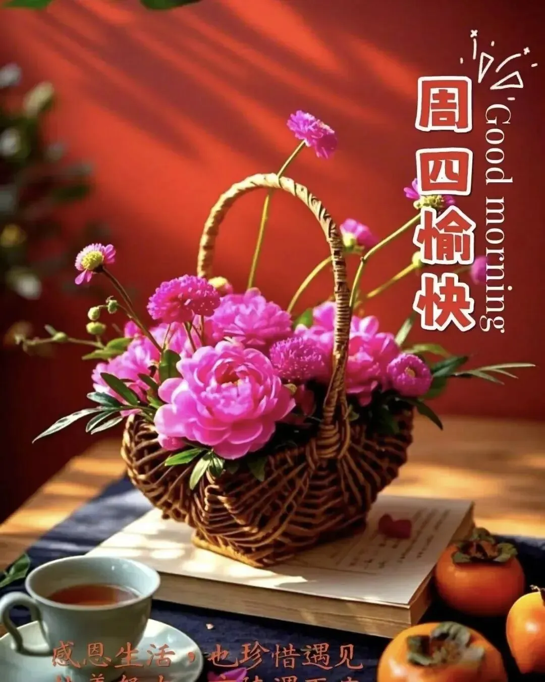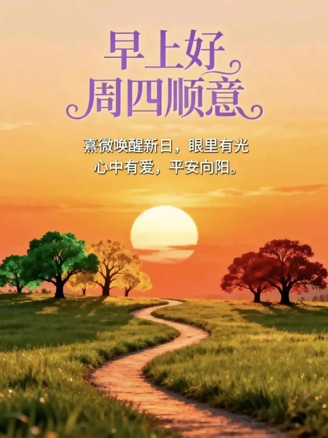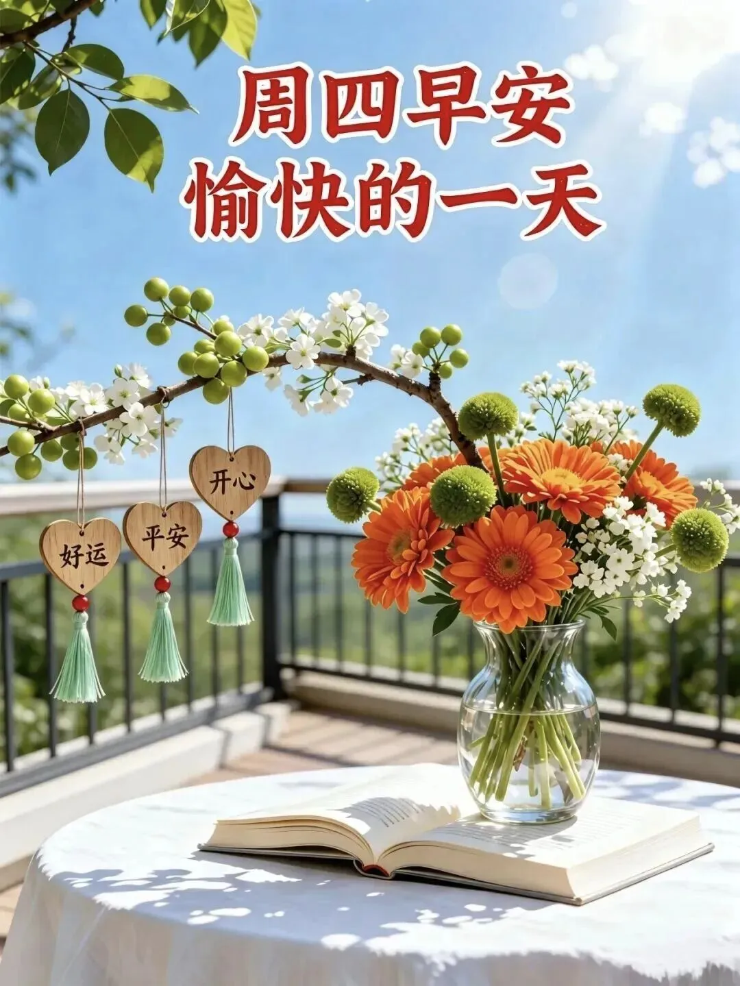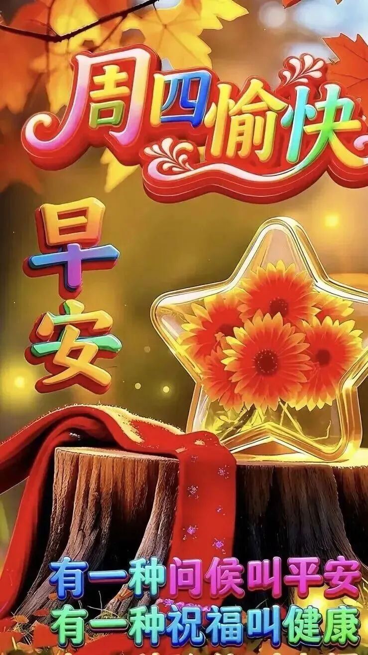 4. 周四早安☀️!半周已过,曙光在前💪。愿你今天元气满满,状态在线✨。烦恼清零,快乐加倍😊,忙有所值,累有所得,三餐四季,温暖有趣,生活温柔,万事皆可期🌿。
