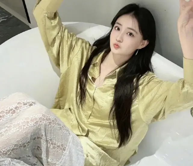 徐璐又一次刷新女神时代,白色雪花长裙搭配翠绿色衬衣魅力无双!