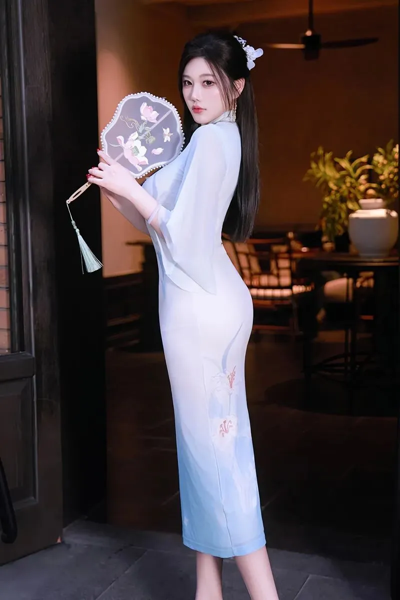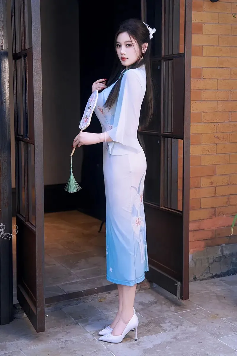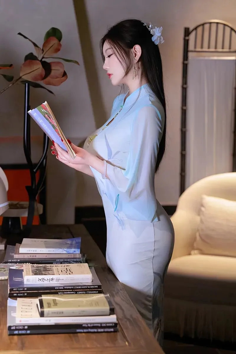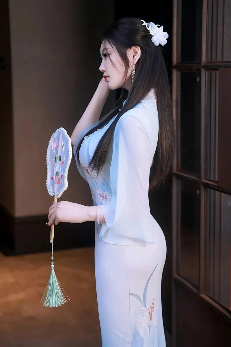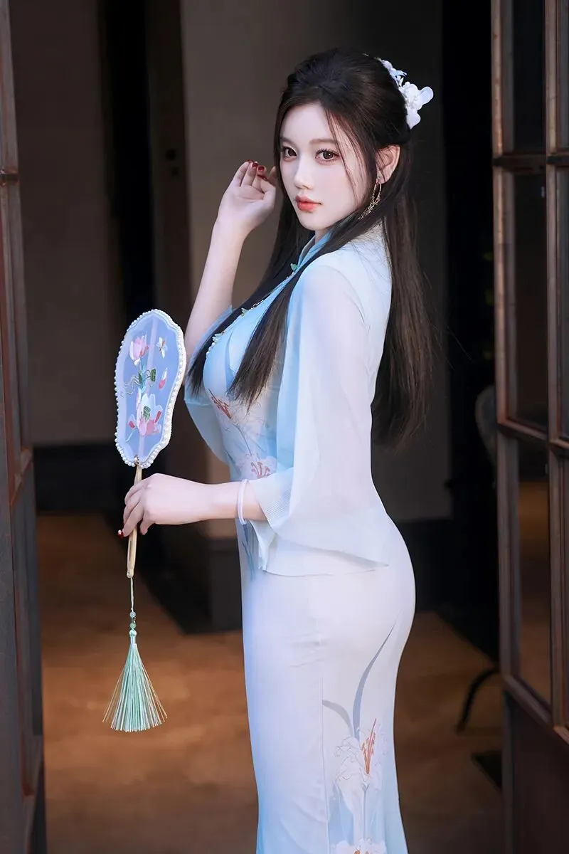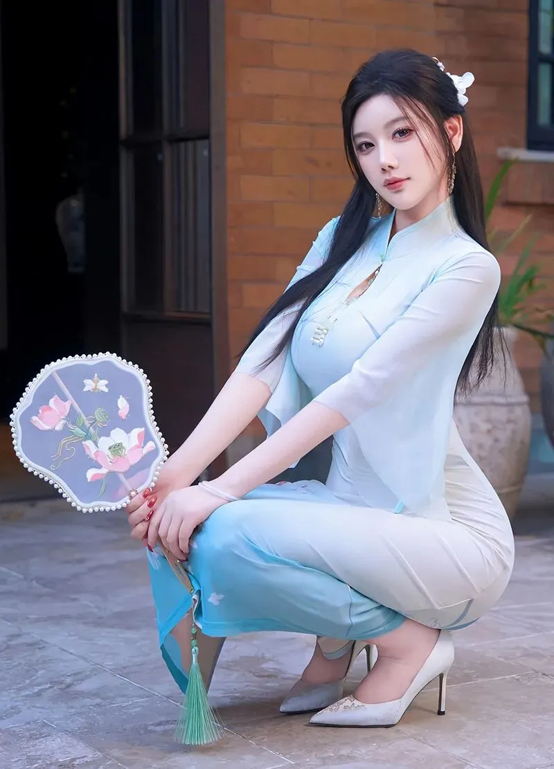 当前位置:首页>美女资讯>性感女神杨晨晨蓝色古风旗袍丰腴迷人