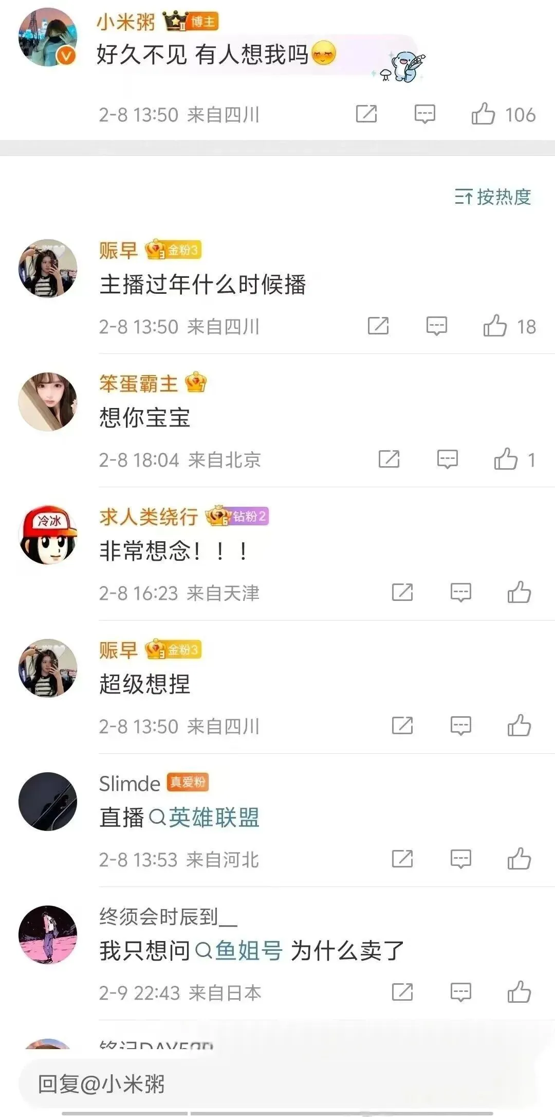 不过小米粥倒是没正面回应过这些。她一如既往地发萌宠日常,偶尔晒晒生活,好像评论区那些关于深海鱼的追问,她通通没看见。