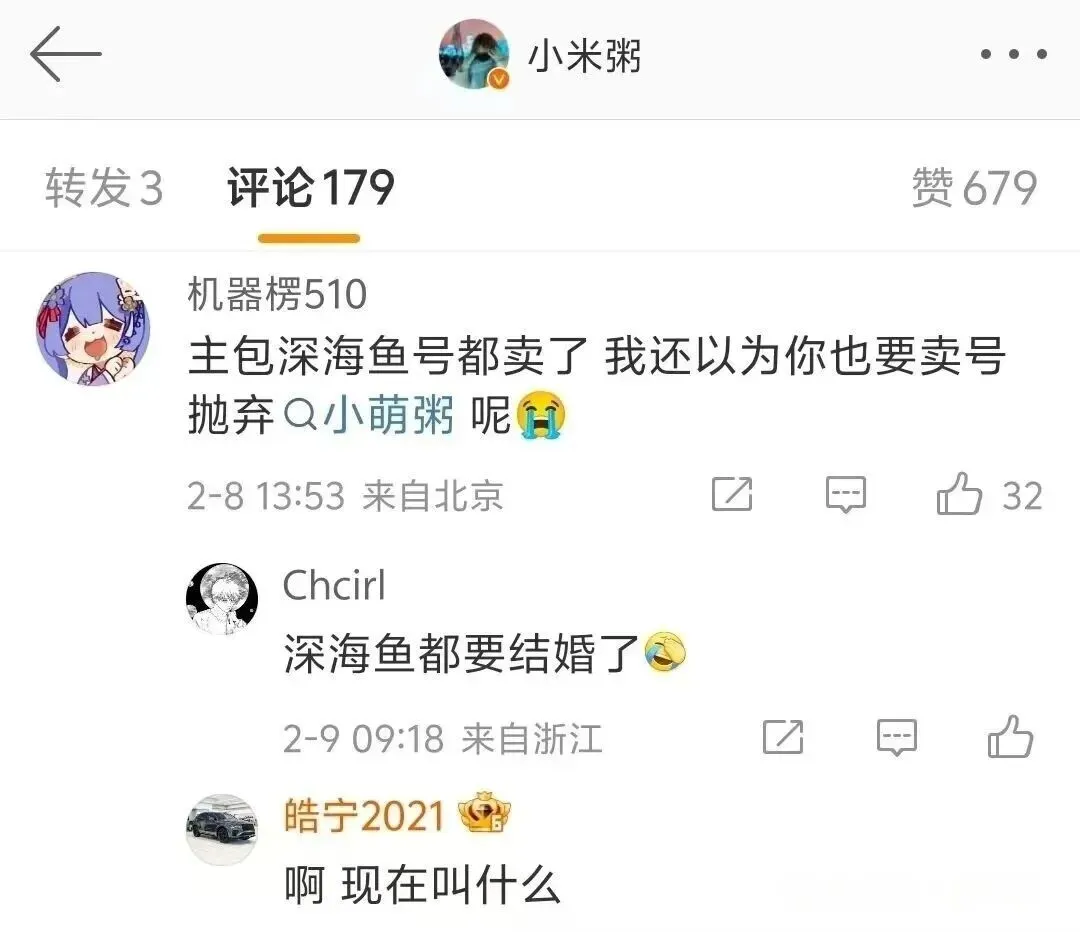 就在最近,小米粥发了一条微博,底下评论区立马有人cue深海鱼——