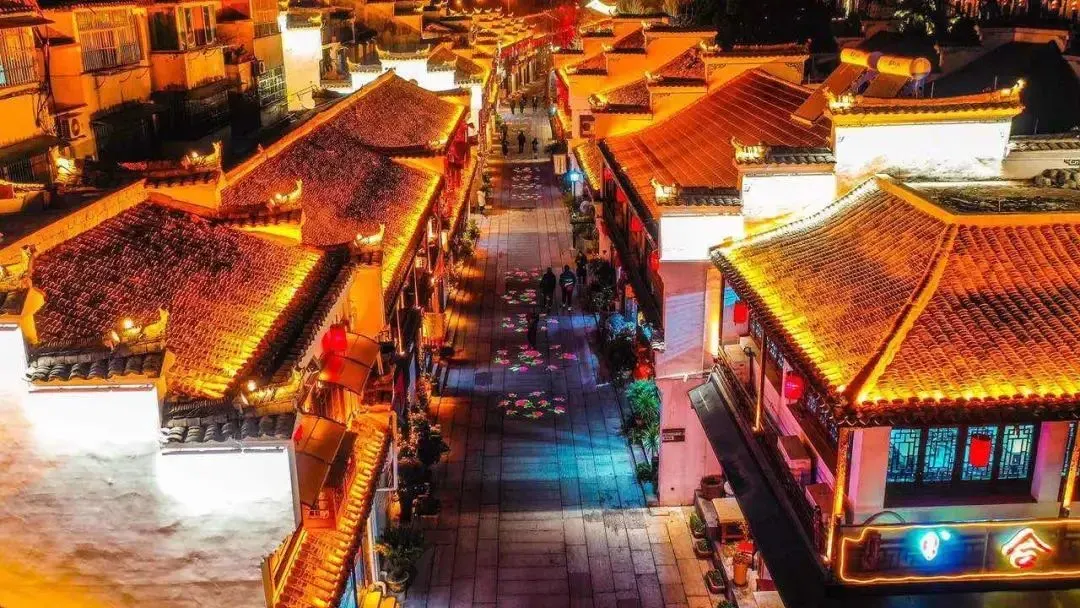 五彩斑斓、旋转飞舞的灯光不仅让这里的古建筑群变得生动活泼,也让这里的小巷变得如梦如幻,漫步其中,仿佛走进梦幻世界,让人不思归路。