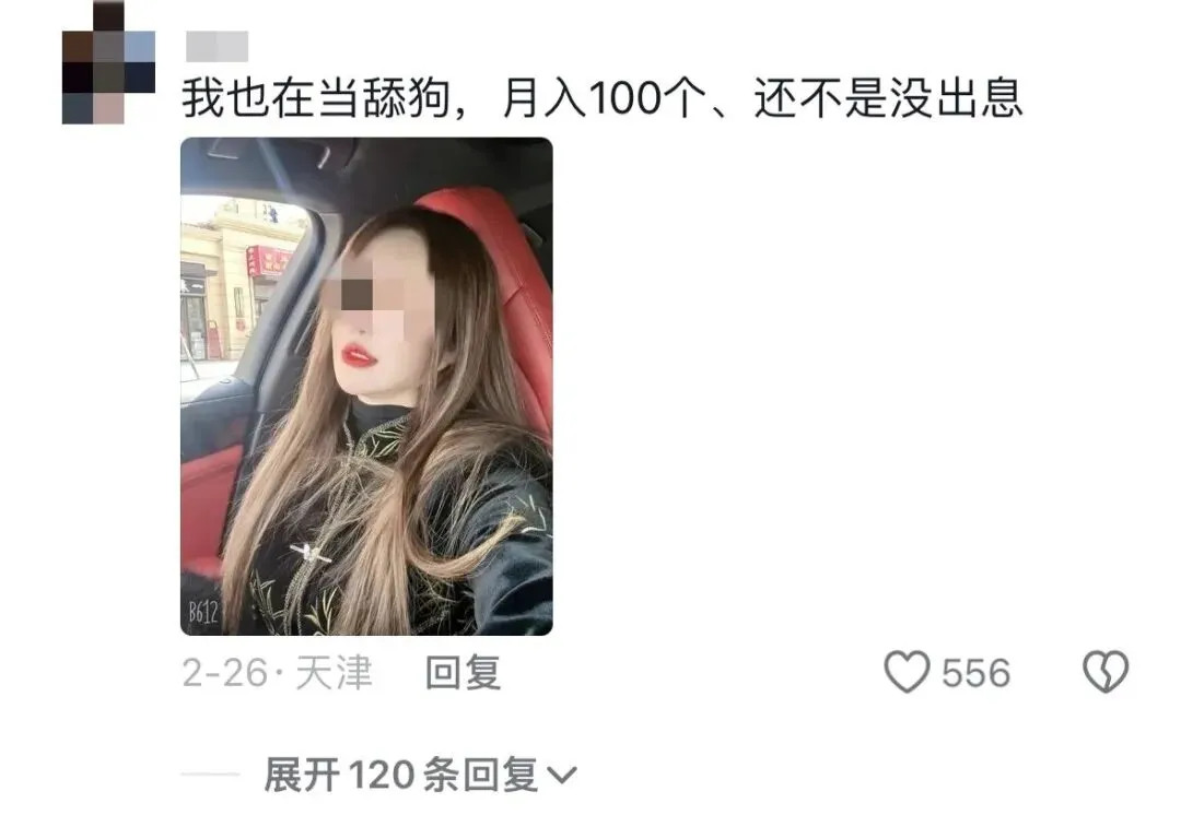 比如这位,人家月入100个,还在当舔狗,却还谦虚地说自己没出息。
