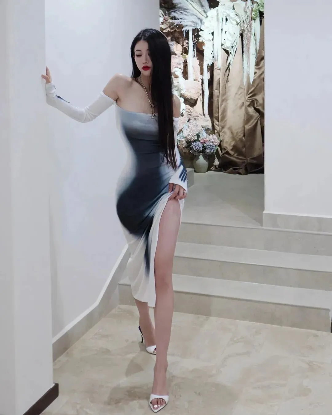 前阵子和高中室友聚餐,她穿了条露背裙,我一眼认出是当年她被骂 “不像好学生” 的那条。她扒拉着我红衬衫的领口笑:“你记不记得高二我暗恋那男生,为了他把裙子塞衣柜,现在?我穿露背裙是因为我后背好看,不是为了谁的眼光。”你看这张图里的姐姐,手搭在楼梯扶手上都带风,哪有半分 “等谁来接” 的样子?我现在出门必涂正红色口红,穿能露锁骨的衣服 —— 上周跟朋友去 livehouse,有男生过来要联系方式,我抬了抬高跟鞋尖:“我今天是来听歌的,没空聊‘你觉得我穿得怎么样’。”前几天和闺蜜逛街,她盯着我新买的高跟鞋说 “你变了”。我笑着踩了踩地砖:“是变了,以前总怕鞋跟太高摔跟头,现在才发现,站得稳不稳,从来不是鞋跟的问题 —— 是你到底把重心放在自己身上,还是别人眼里。”
