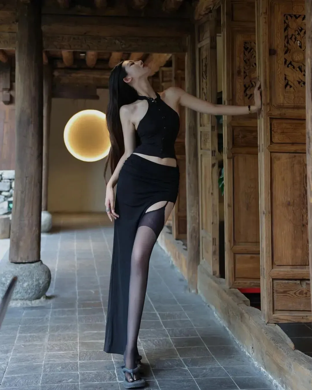 直到去年加班到凌晨,在公司楼下便利店看见个穿酒红吊带的姐姐,踩着细高跟拎着关东煮,跟老板笑着说 “加俩鱼丸,今天稿子过了”—— 那瞬间我突然醒了:“得体” 哪是别人定的规矩?是我把 “让所有人舒服”,当成了自己的任务。后来我开始慢慢 “抢地盘”:先从涂正红色口红开始,再到穿露肩衫开会,直到今天套上这双细高跟的鞋,坐在天桥边看车来车往。风把头发吹乱的时候,我摸了摸脖子上的项链,突然觉得 “好看” 哪儿是为了吸引谁啊?是我终于敢把 “我喜欢” 写在身上,像给心脏穿了件铠甲。前几天我母亲视频看见我这身,顿了顿说 “好像比以前精神”—— 你看,那些我们怕的 “议论”,其实大多是自己脑补的戏。就像今天这双丝袜,有人觉得 “太张扬”了,可我踩着它走过天桥时,连脚步都比平时稳。