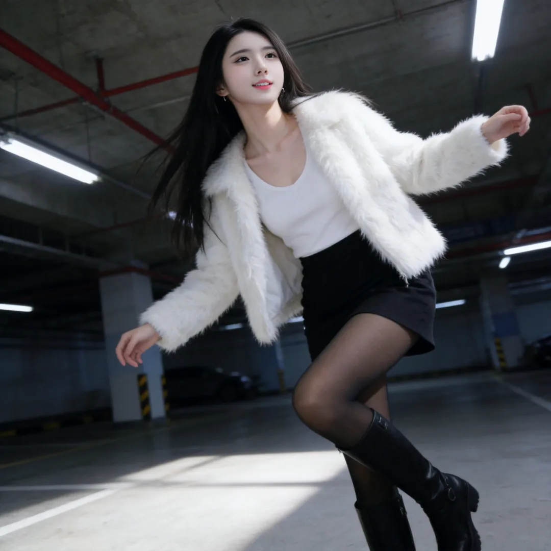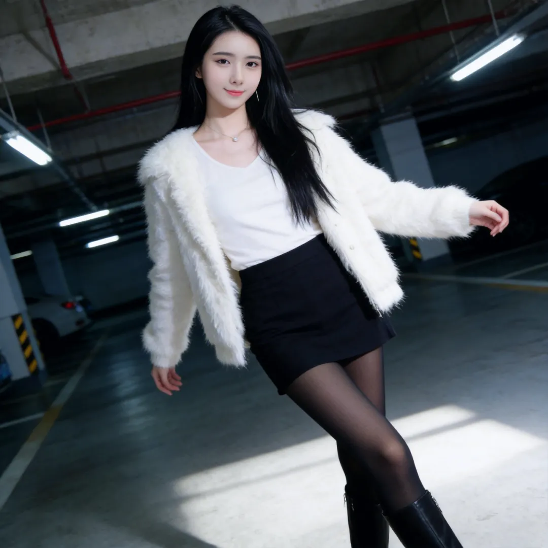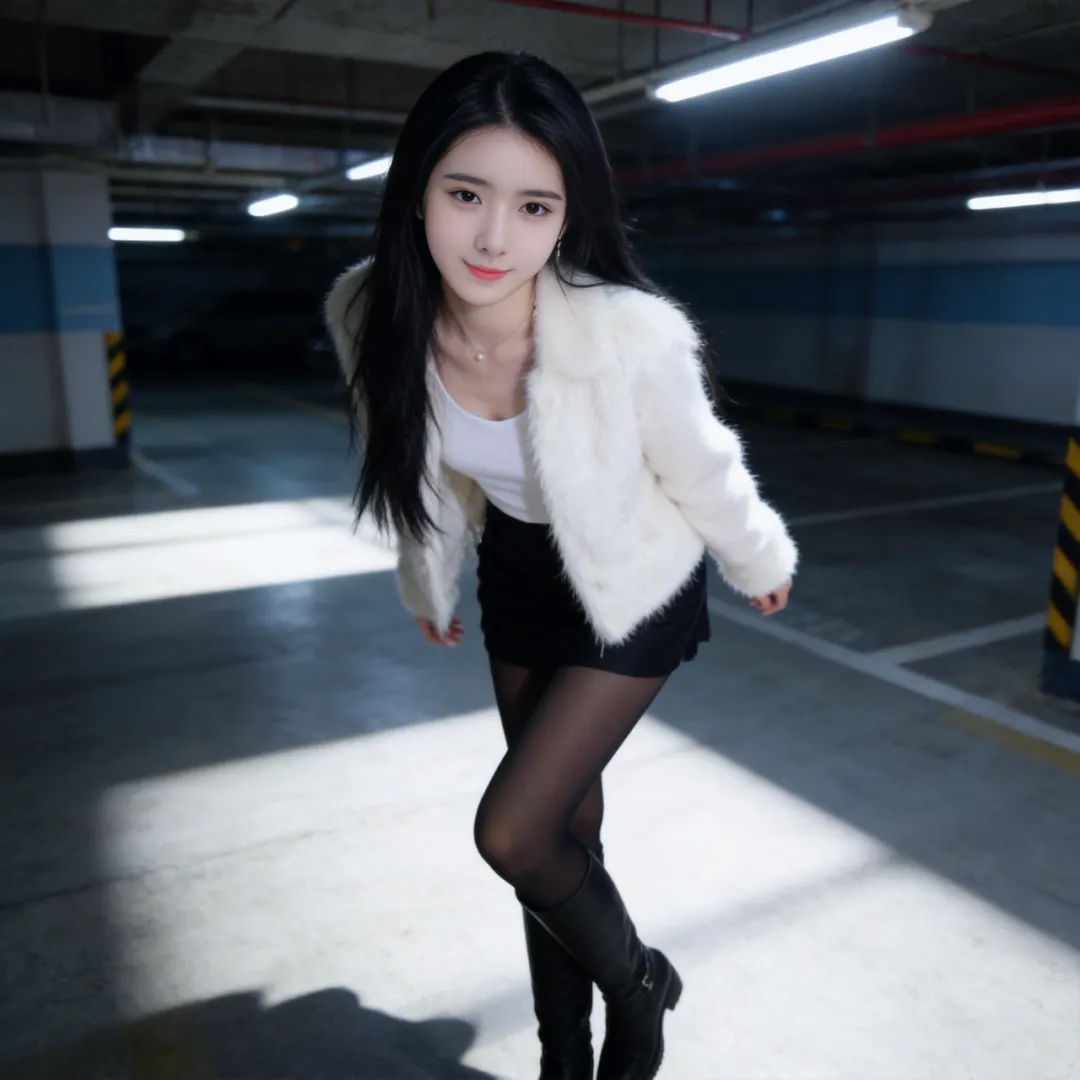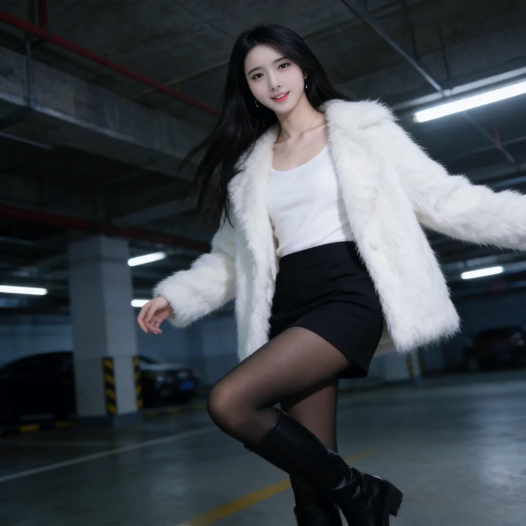 地下车库的冷调灯光下,混凝土墙面泛着青灰色的光泽,轮胎与地面摩擦的声响在空旷空间里回荡。这里本是机械与速度的领地,却因一双长靴的介入,衍生出令人屏息的时尚叙事。长靴不再是冬季的保暖符号,而是化身都市女性征服空间的战靴,在水泥森林里踏出铿锵的节奏。