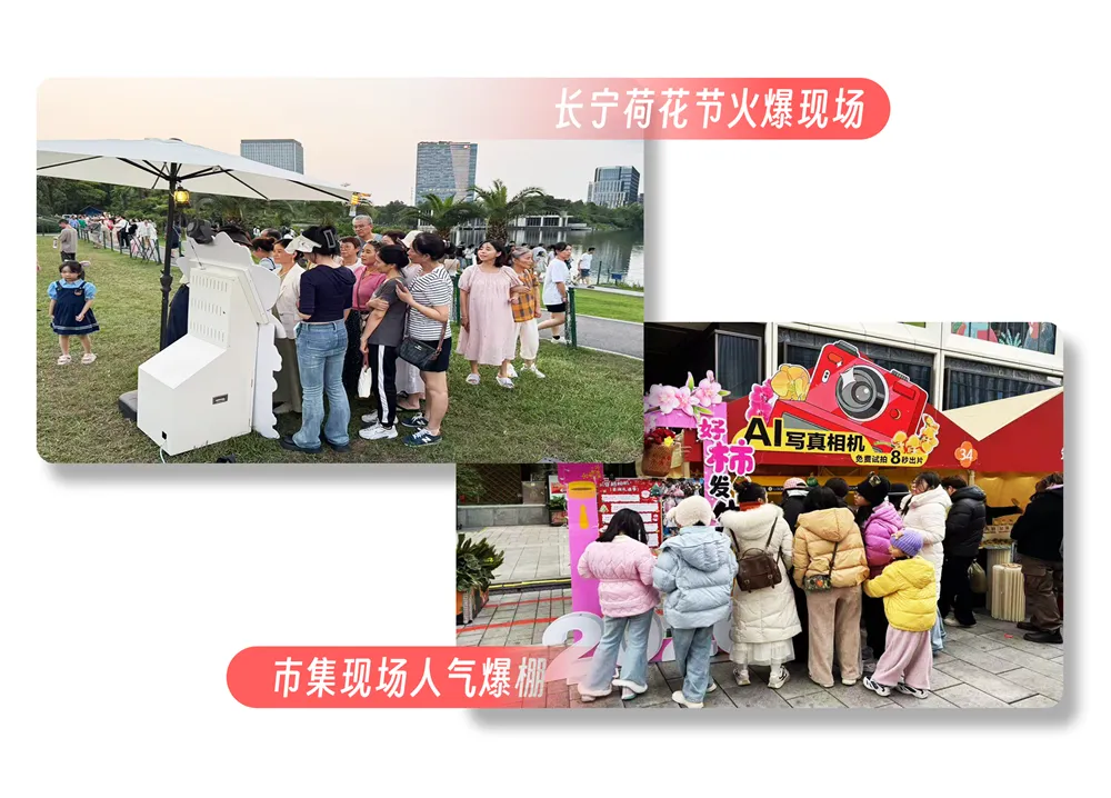 这个AI相机可不是新鲜玩意儿,它已经在全国各地火得一塌糊涂!你可能在热门商场排过长队,在网红市集见过人群围观——没错,就是那个风靡上海、单日营收破万的AI写真相机!