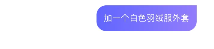 比如你想给人物换个衣服,可以直接在对话框中输入描述词“加一件白色羽绒服外套”。