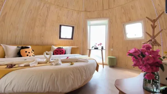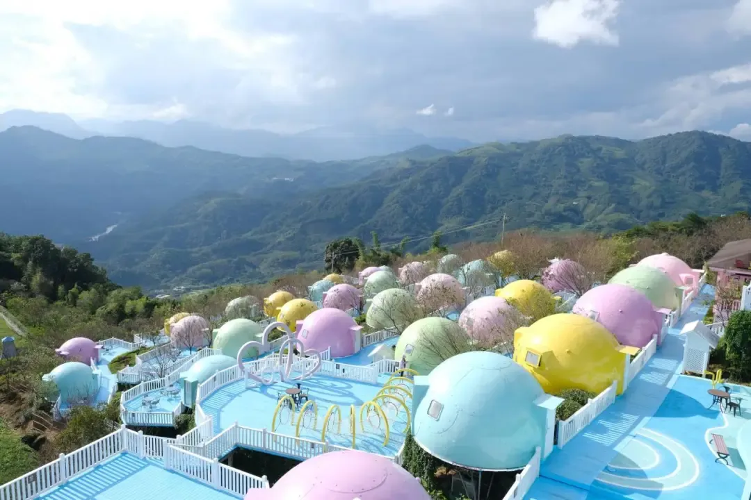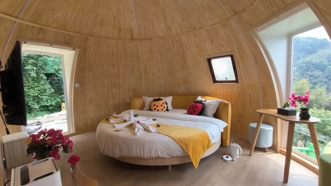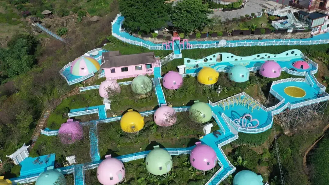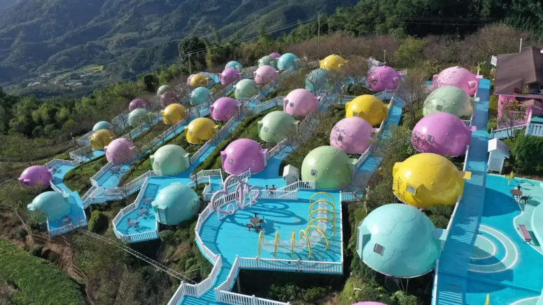 前往【七星瓢虫露营基地】在青山绿水间,红的、白的、蓝的、黄的…..七星瓢虫屋点缀其中,给绿色的山林增添 了许多活力,仿佛这里就是七星瓢虫温暖的家。