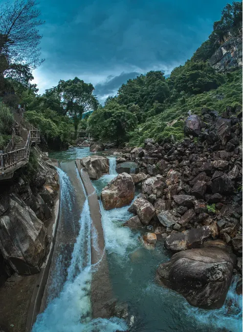 这里可以欣赏到独具特色的奇石、叠水、瀑布、峡、峰、玻璃栈道、吊桥等景观,看闲云悠悠晃晃,看流水开心跳跃!