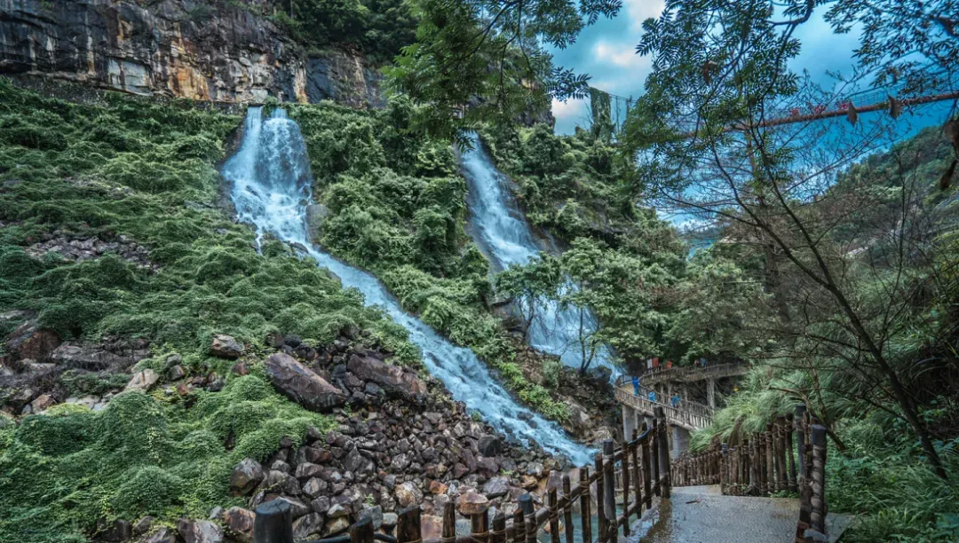 这里可以欣赏到独具特色的奇石、叠水、瀑布、峡、峰、玻璃栈道、吊桥等景观,看闲云悠悠晃晃,看流水开心跳跃!