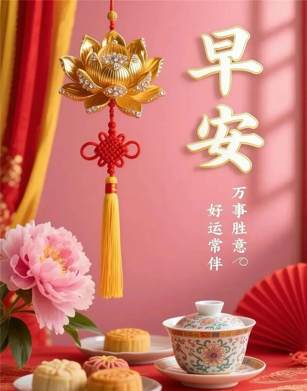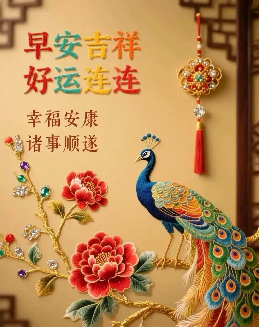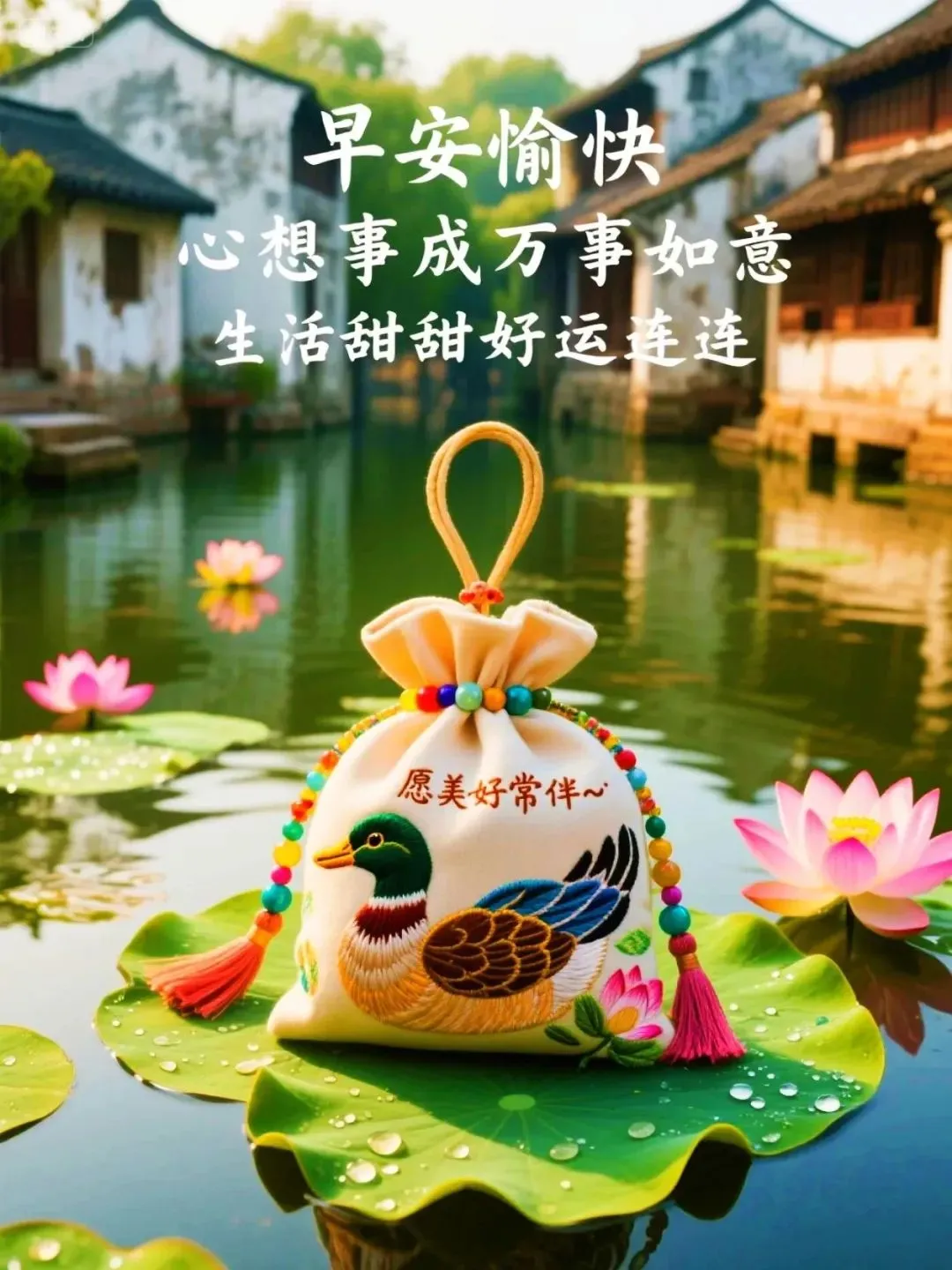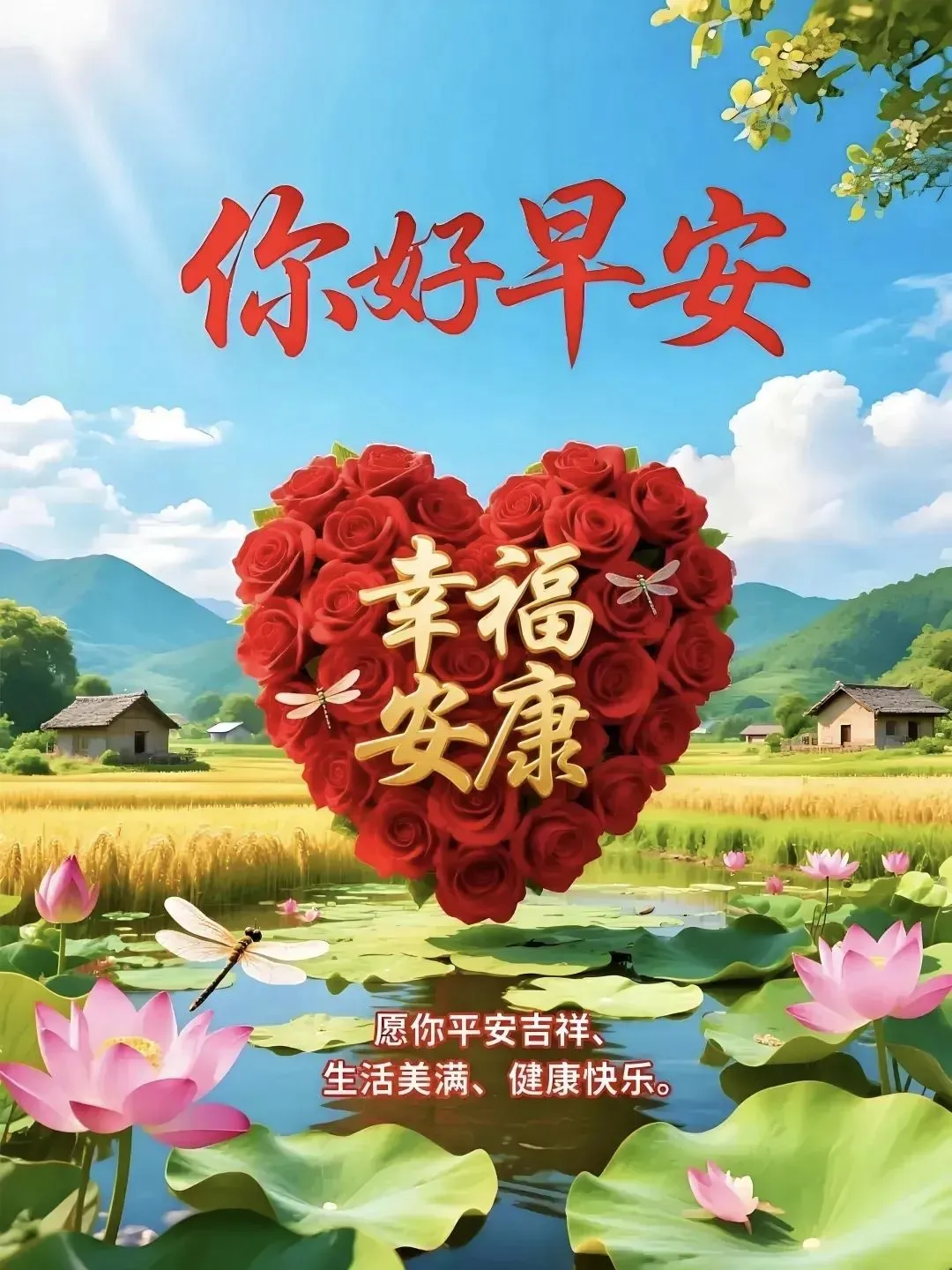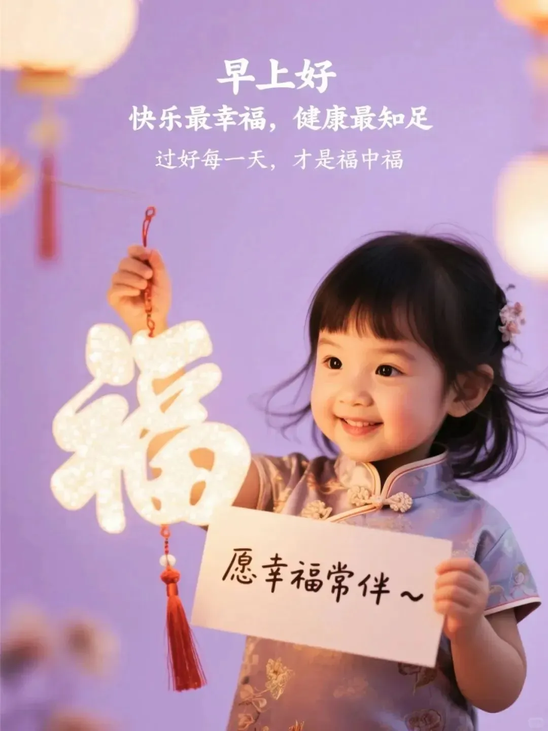 清晨放飞祝愿,展开崭新一天。福禄寿喜照面,平安喜乐都现。吉星伴你身边,福星陪你向前。开心快乐天天,吉祥如意年年。愿您新的一天,收获新的圆满!亲爱的朋友,早安!