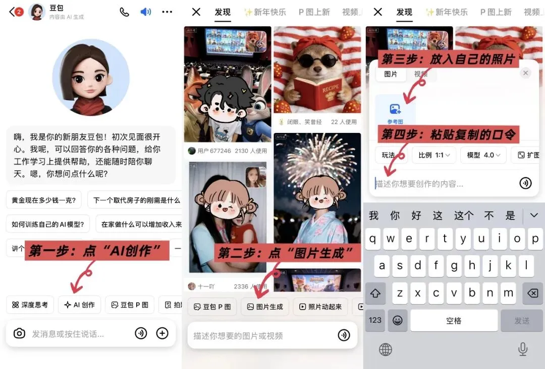 只要你手机上有 AI 生图软件(咱们用的是豆包)上传正脸照片,复制咱们贴出来的 AI 指令,都可以轻松 get 新年大片!