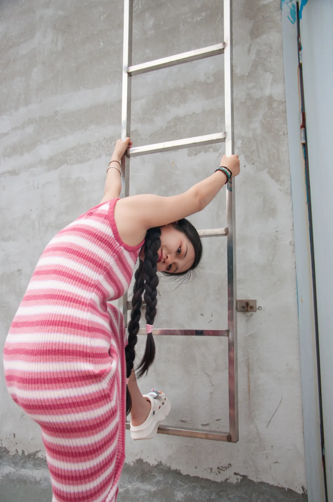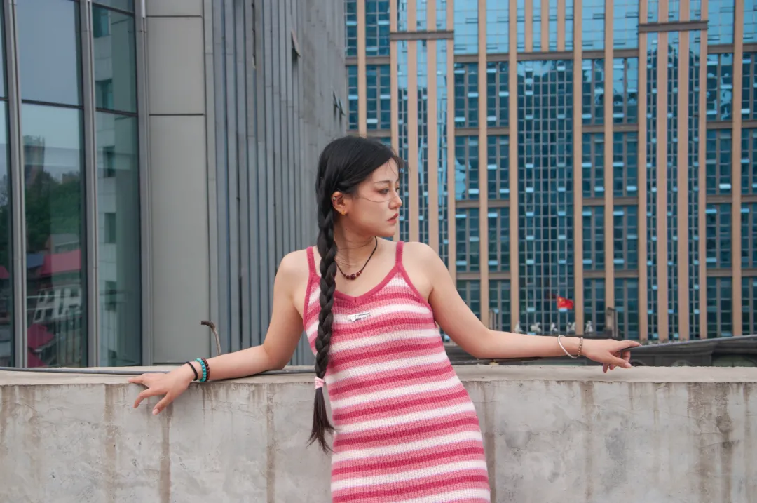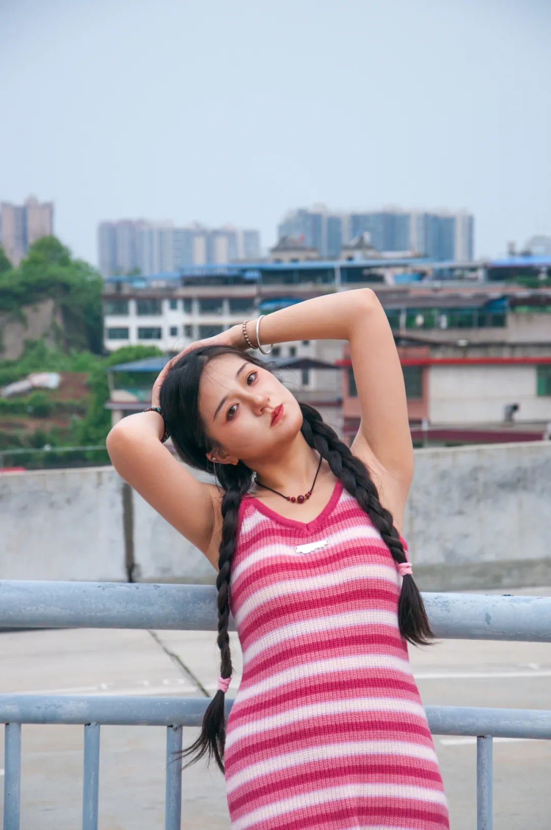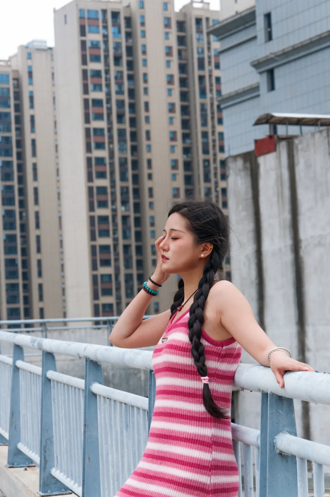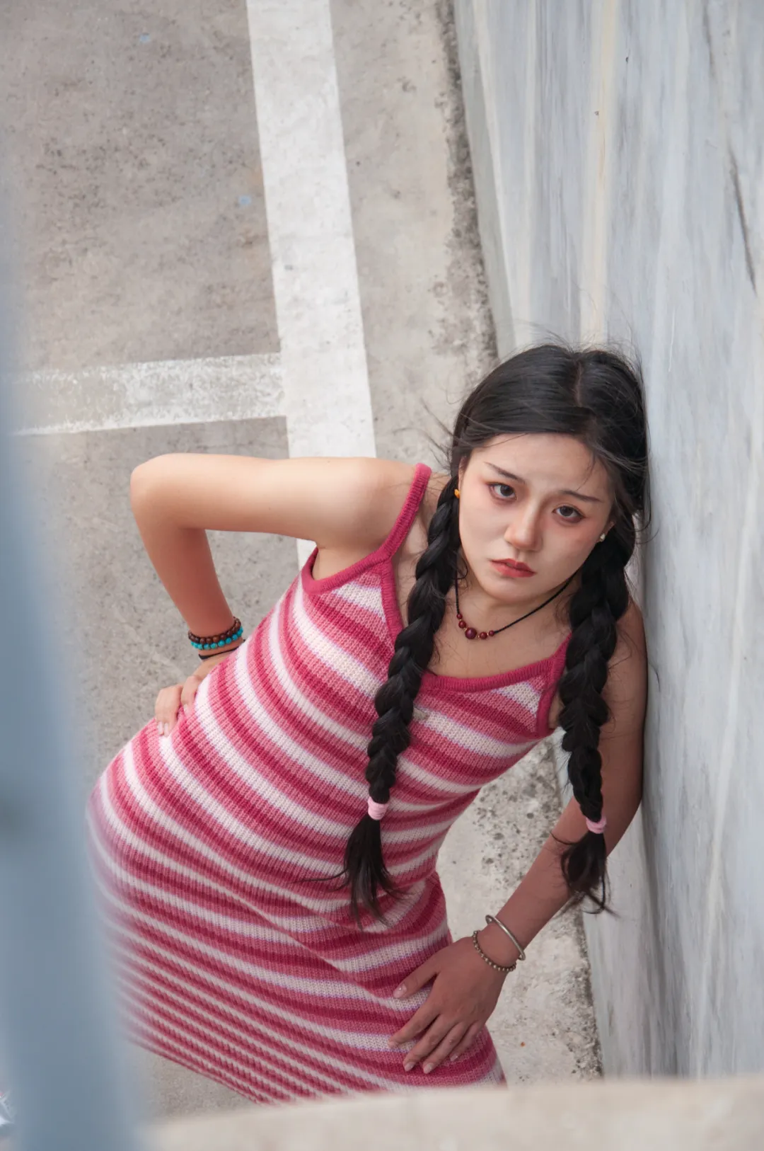 当前位置:首页>美女资讯>写真|粉白条纹针织裙和天台水泥墙